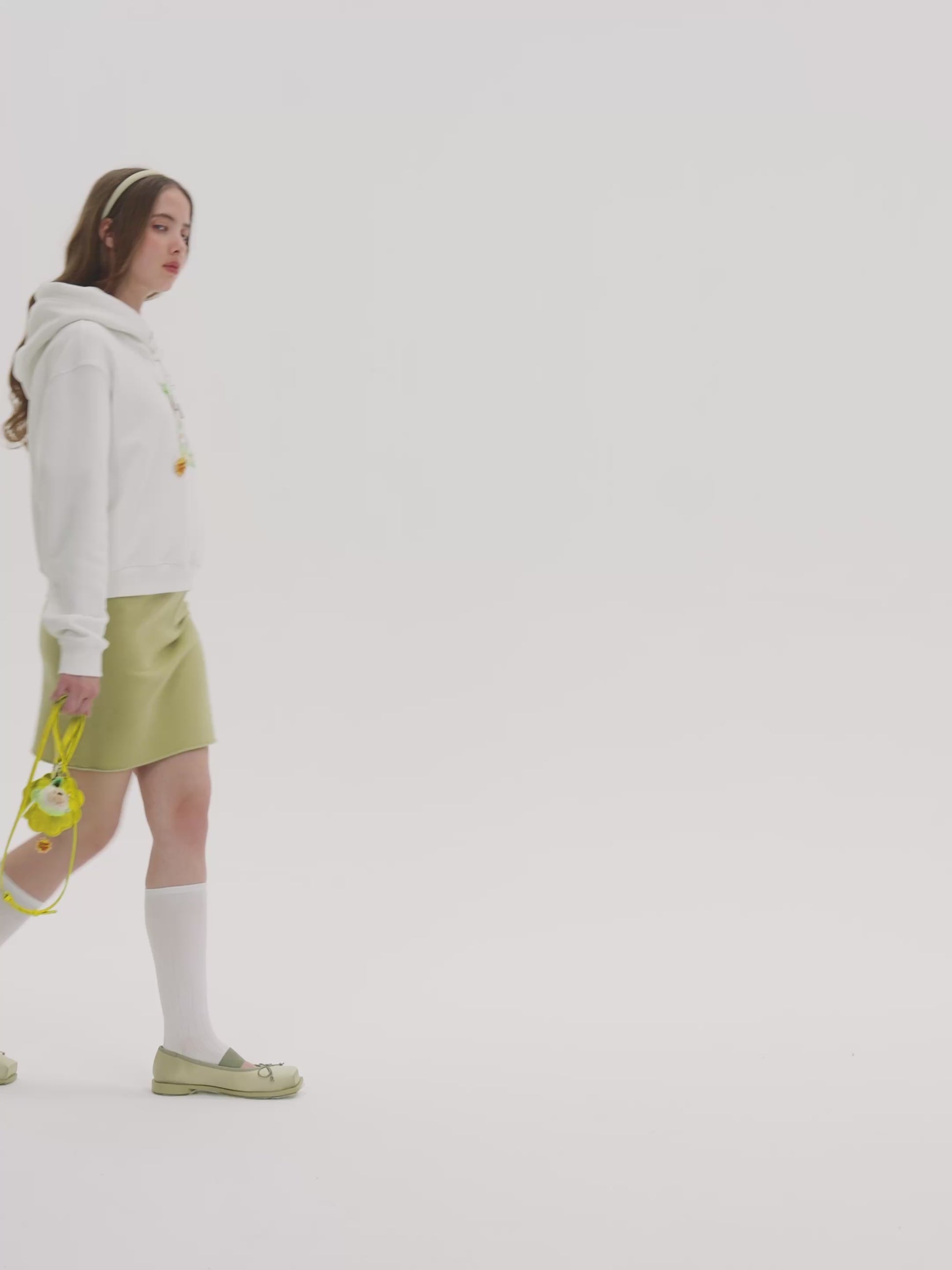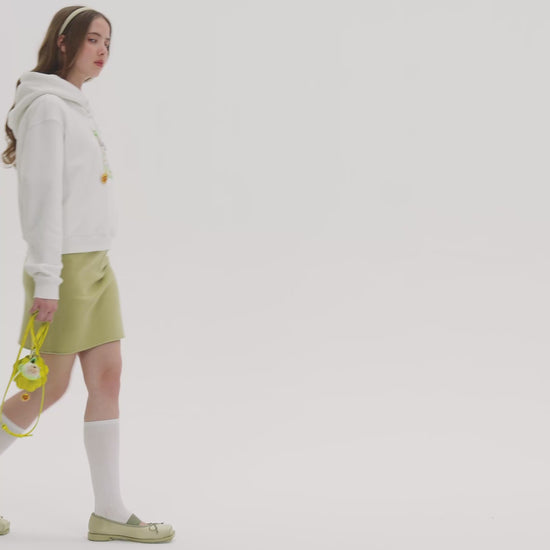 This is a short sweatshirt from the 13DE MARZO x Chupa Chups collaboration. Featuring a fleece interior for softness and warmth, it comes in three color options: white, black, and yellow. The cropped silhouette offers a clean, slimming fit. A candy wrapper-style TPU pocket on the chest holds two scented doll heads, accompanied by co-branded logo prints. A small Chupa Chups leather patch adorns the back of the hood, blending playful design with practical quality for a look that's both trendy and heartwarming.