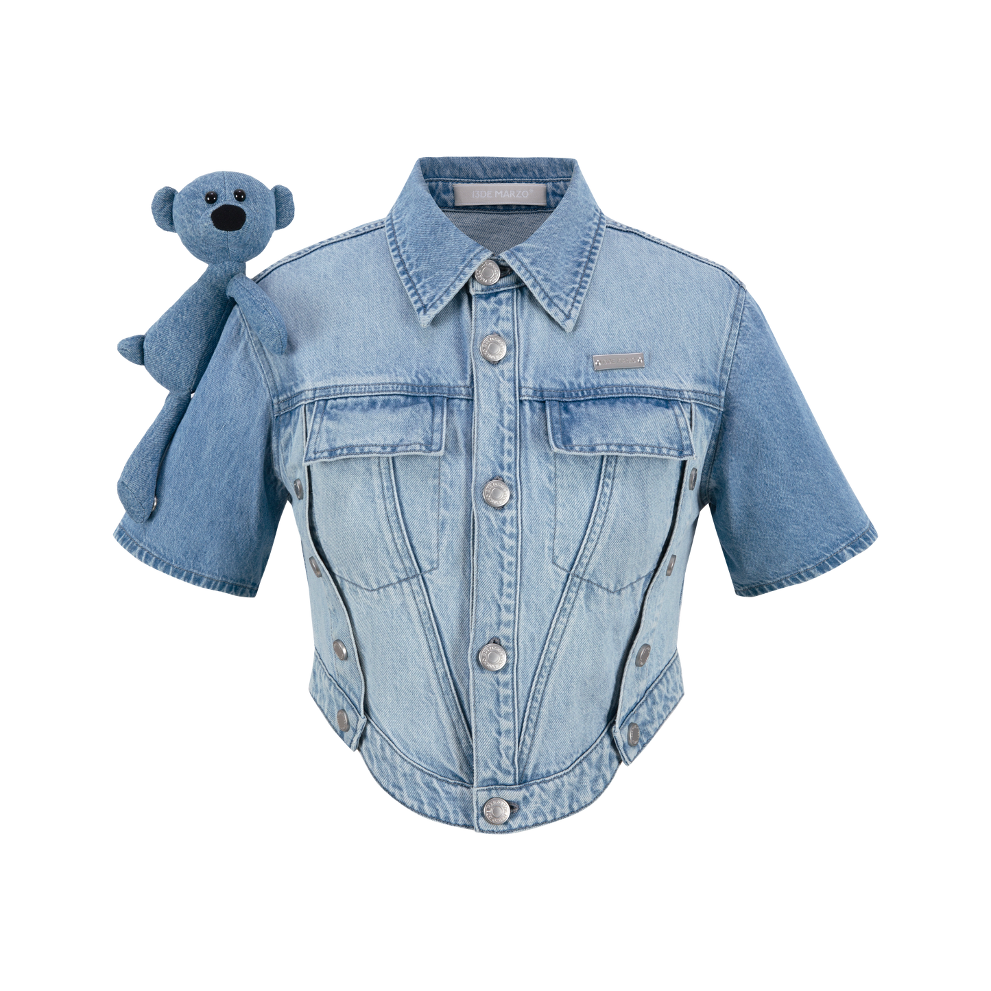 13DE MARZO Metal Rivet Short Denim Shirt