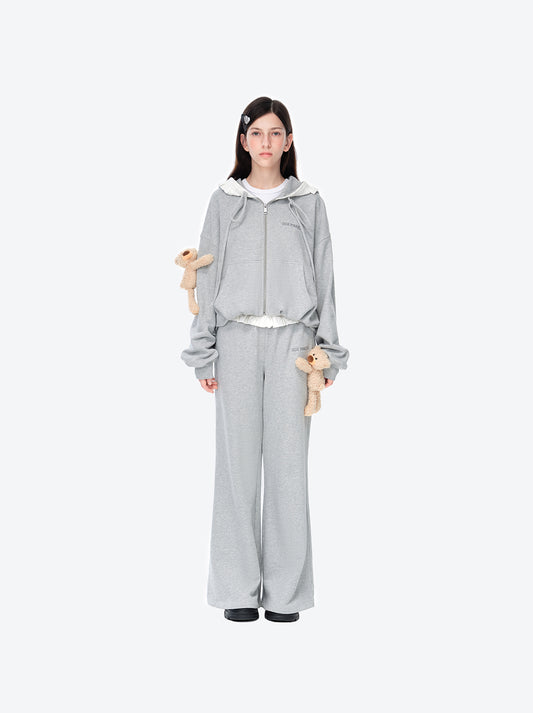 13DE MARZO Lace Edge Zip Hoodie Grey