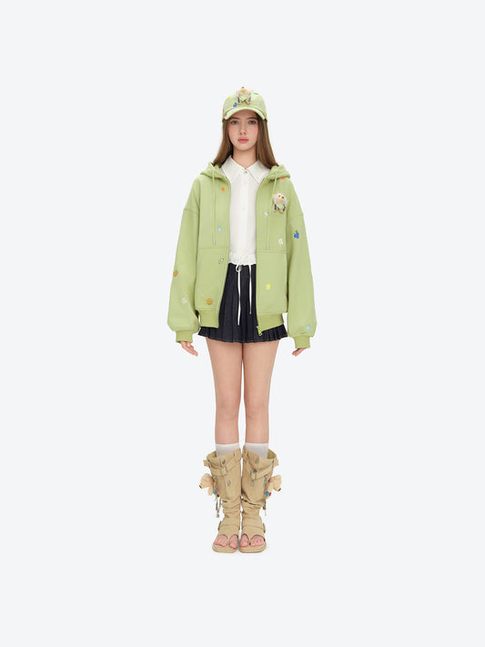 13DE MARZO Tapered Waist Bear Zip Hoodie White