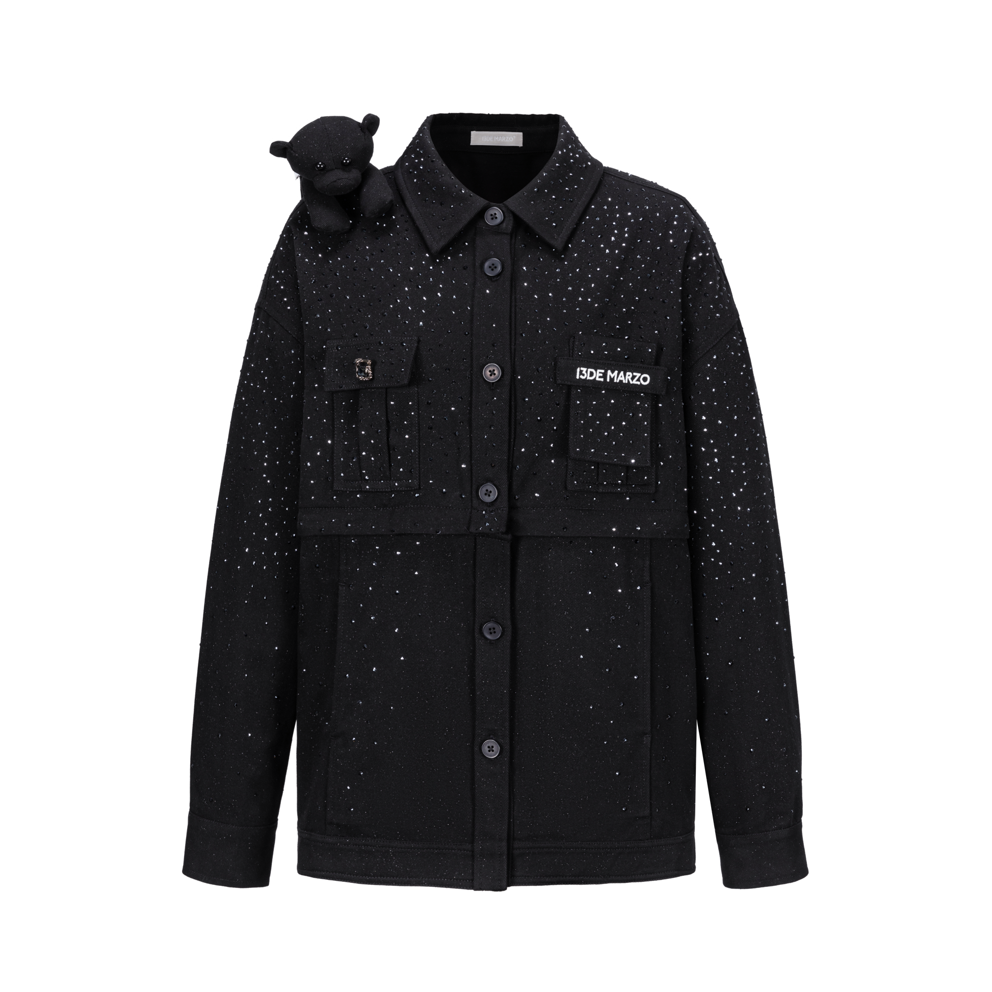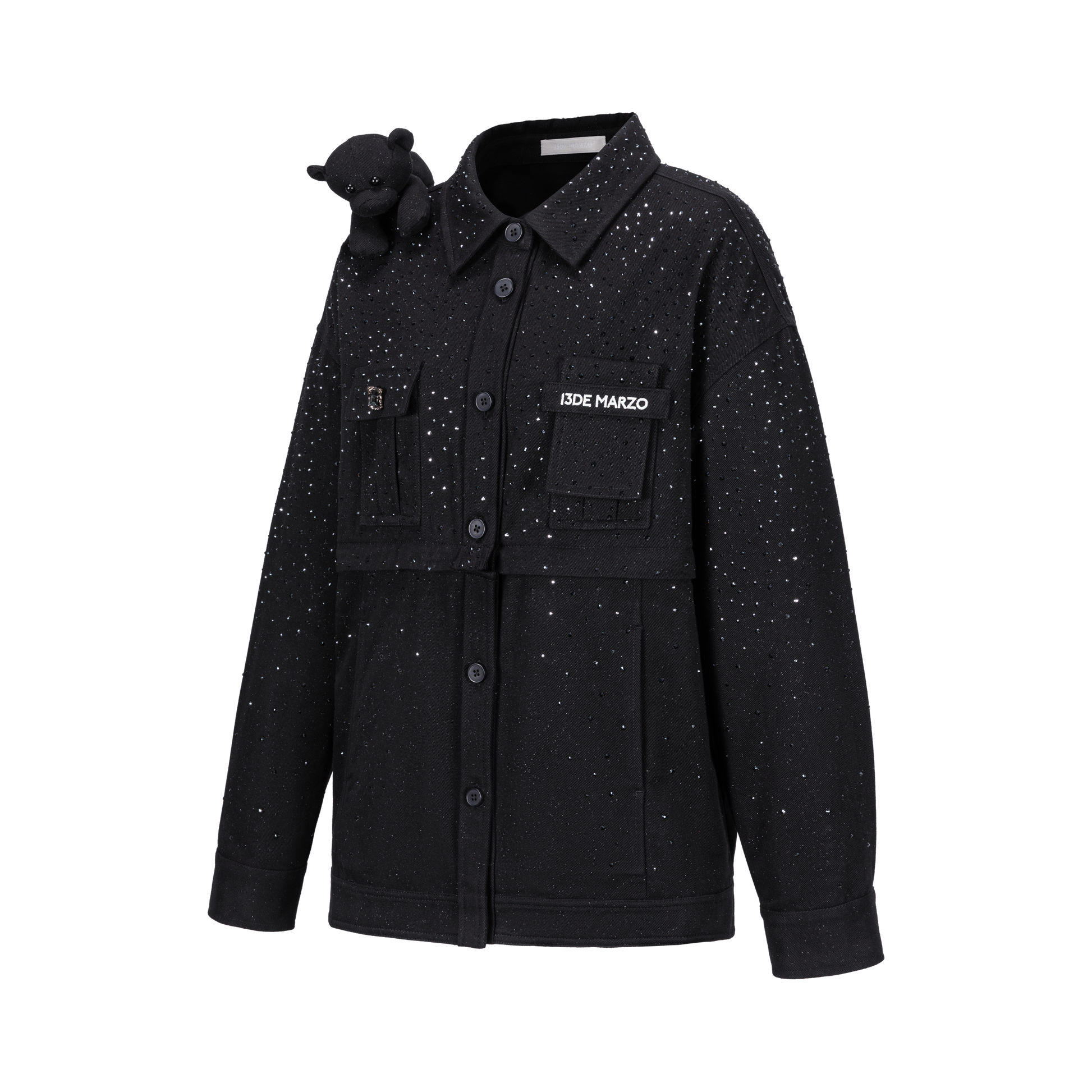 13DE MARZO All-Over Faux Rhinestone Shirt Jacket Black