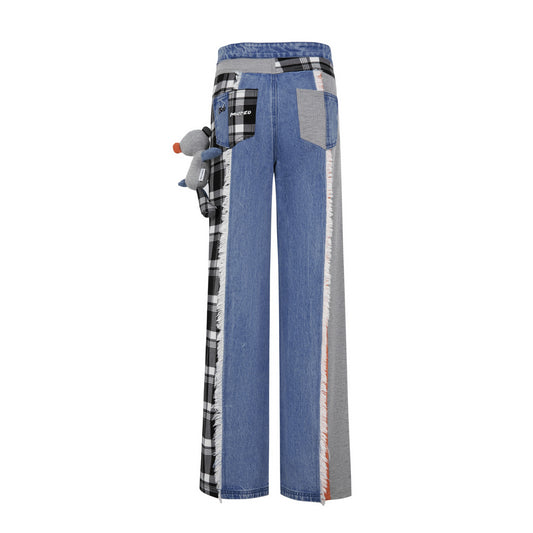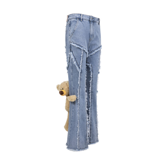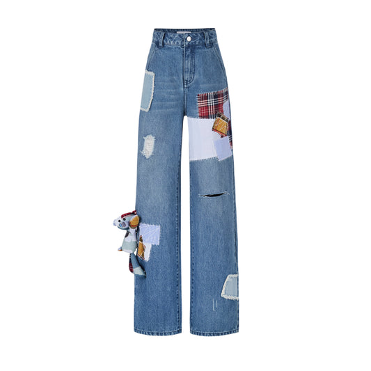 13DE MARZO Denim Bear Plaid Patch Jeans