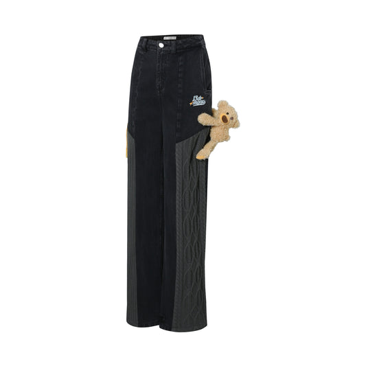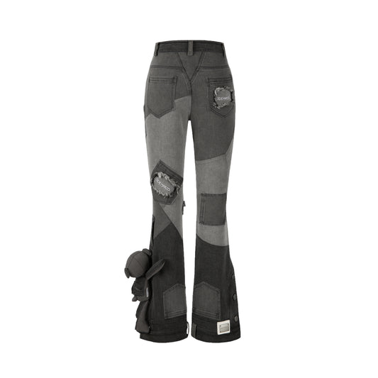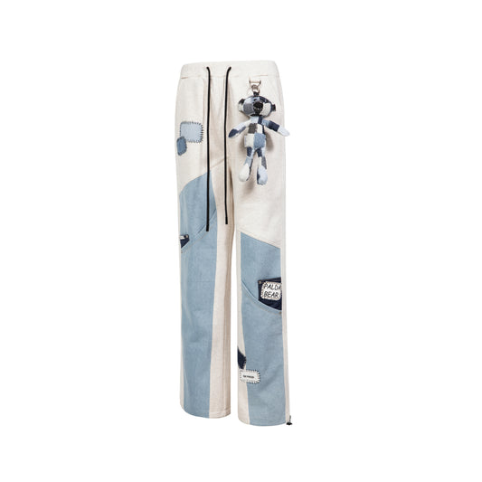 13DE MARZO Denim Patchwork Palda Bear Sweatpants