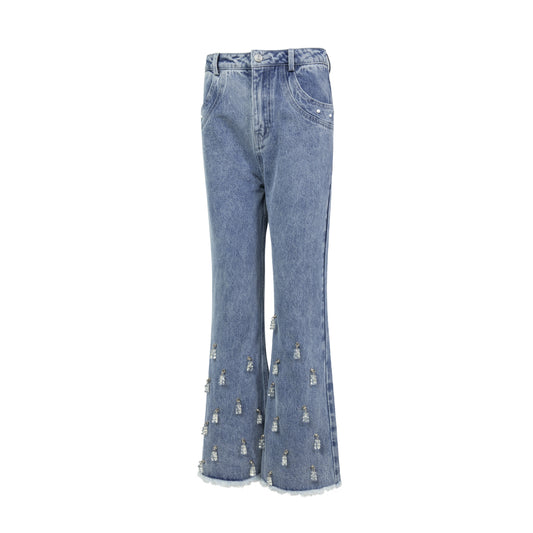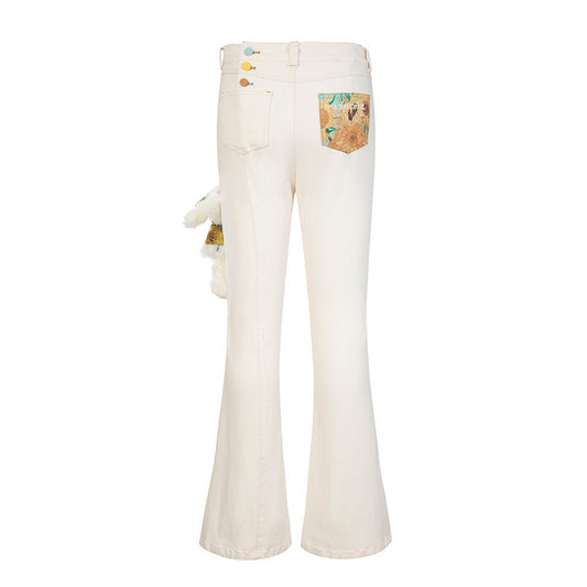 13DE MARZO Allover Smiley Thigh Palda Bear bootcut Jeans