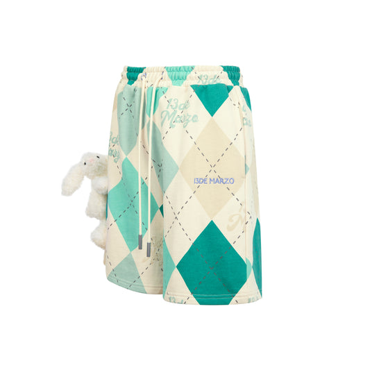 13DE MARZO Bunny Vintage Diamond Pattern Shorts