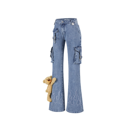 13DE MARZO Multiple Pockets Bear Belt Jeans
