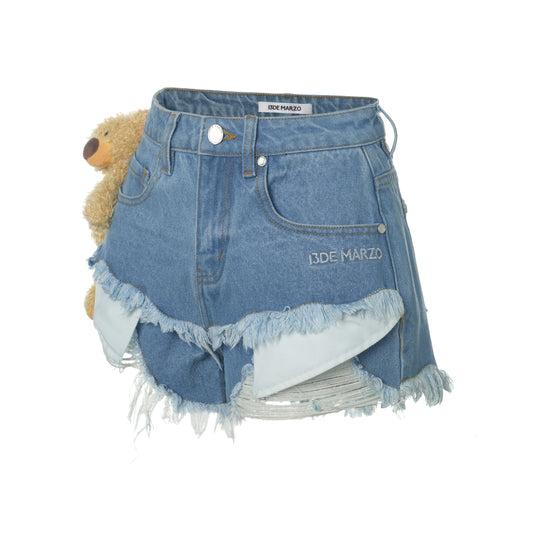 13DE MARZO Van Gogh Masterpiece Denim Shorts