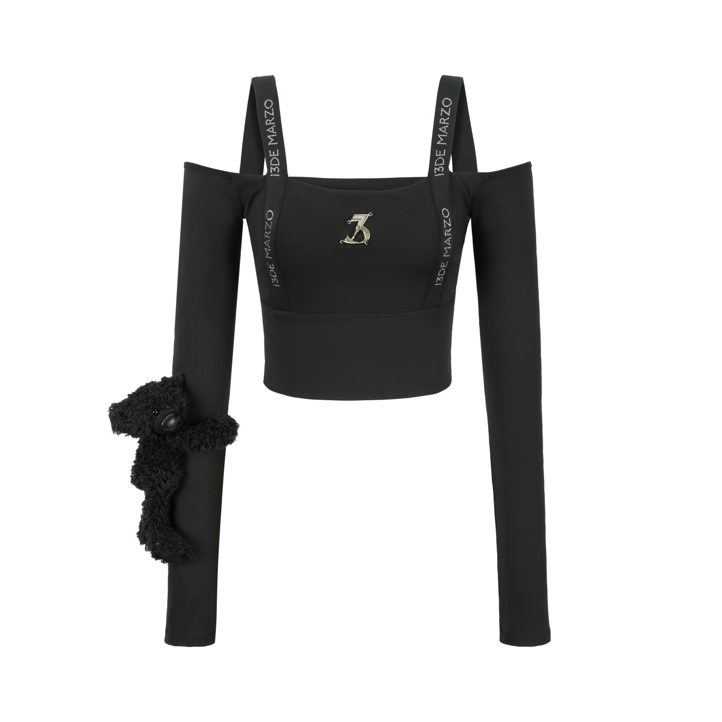 13DE MARZO Digital Logo Rhinestone Off shoulder Camisole