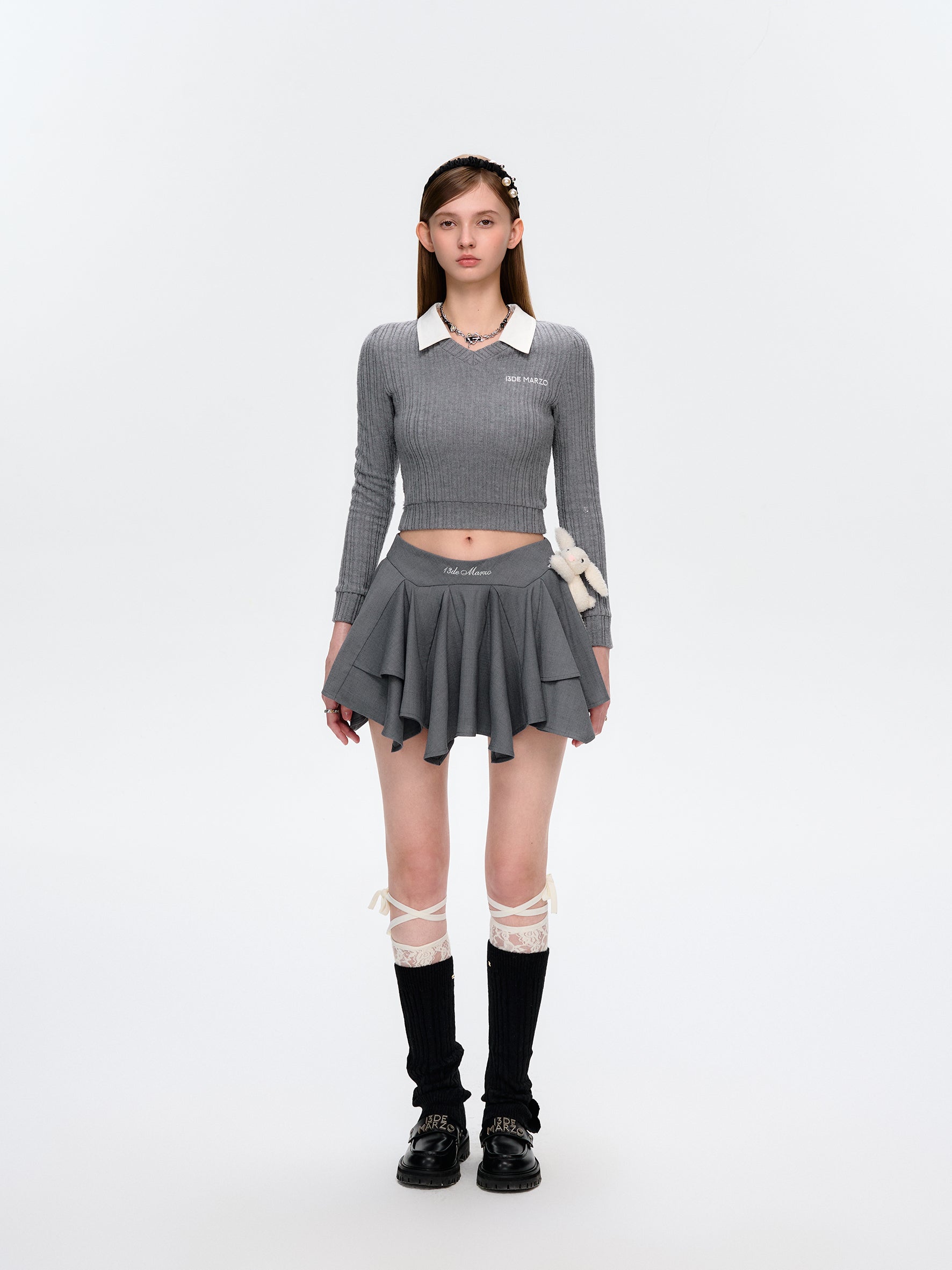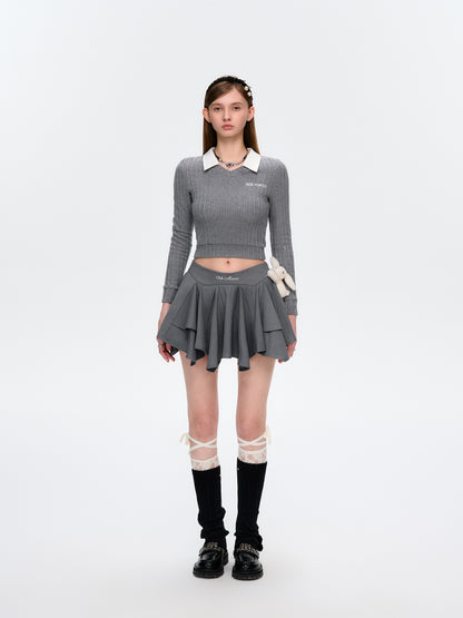 Elevate your summer wardrobe with this avant-garde piece from the main collection—a structured, breathable suiting-fabric skort designed with bold asymmetry and youthful charm. The layered pleated "cake" silhouette brings a dynamic sense of movement and dimension, while delicate silver and gold thread embroidery at the waist adds an elegant shimmer.