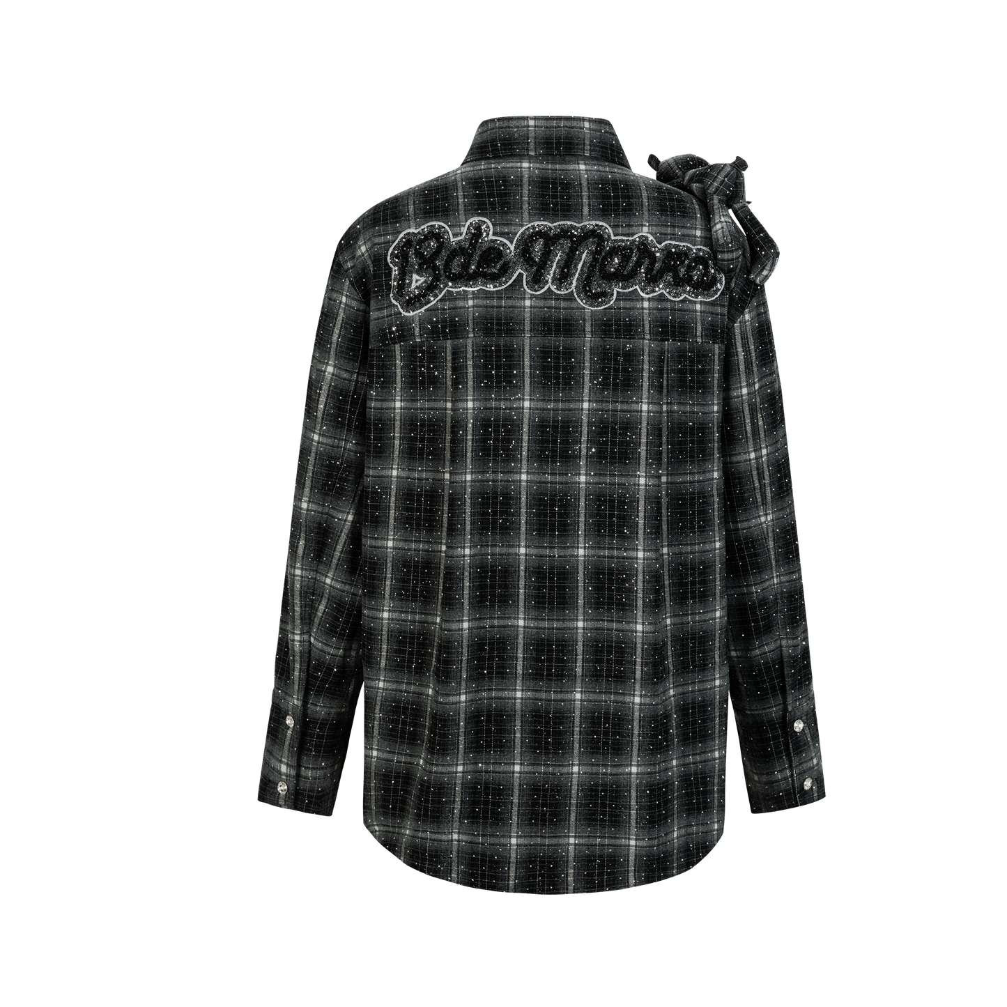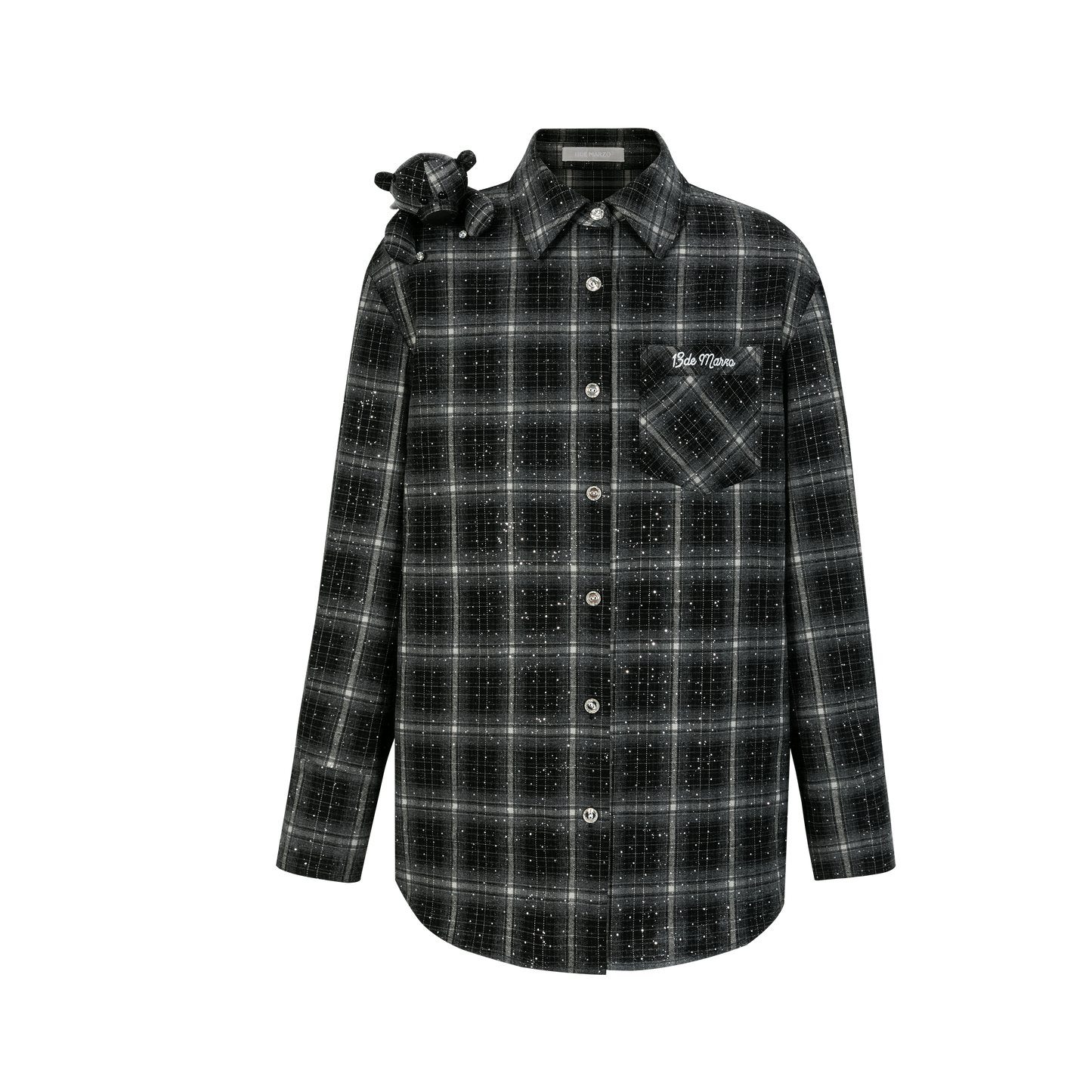13DE MARZO Bear Rhinestone Plaid Shirt