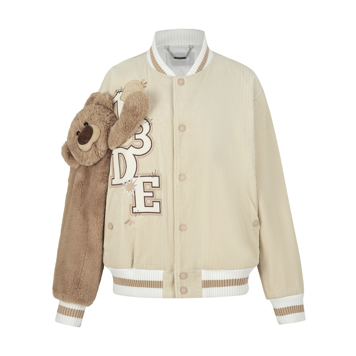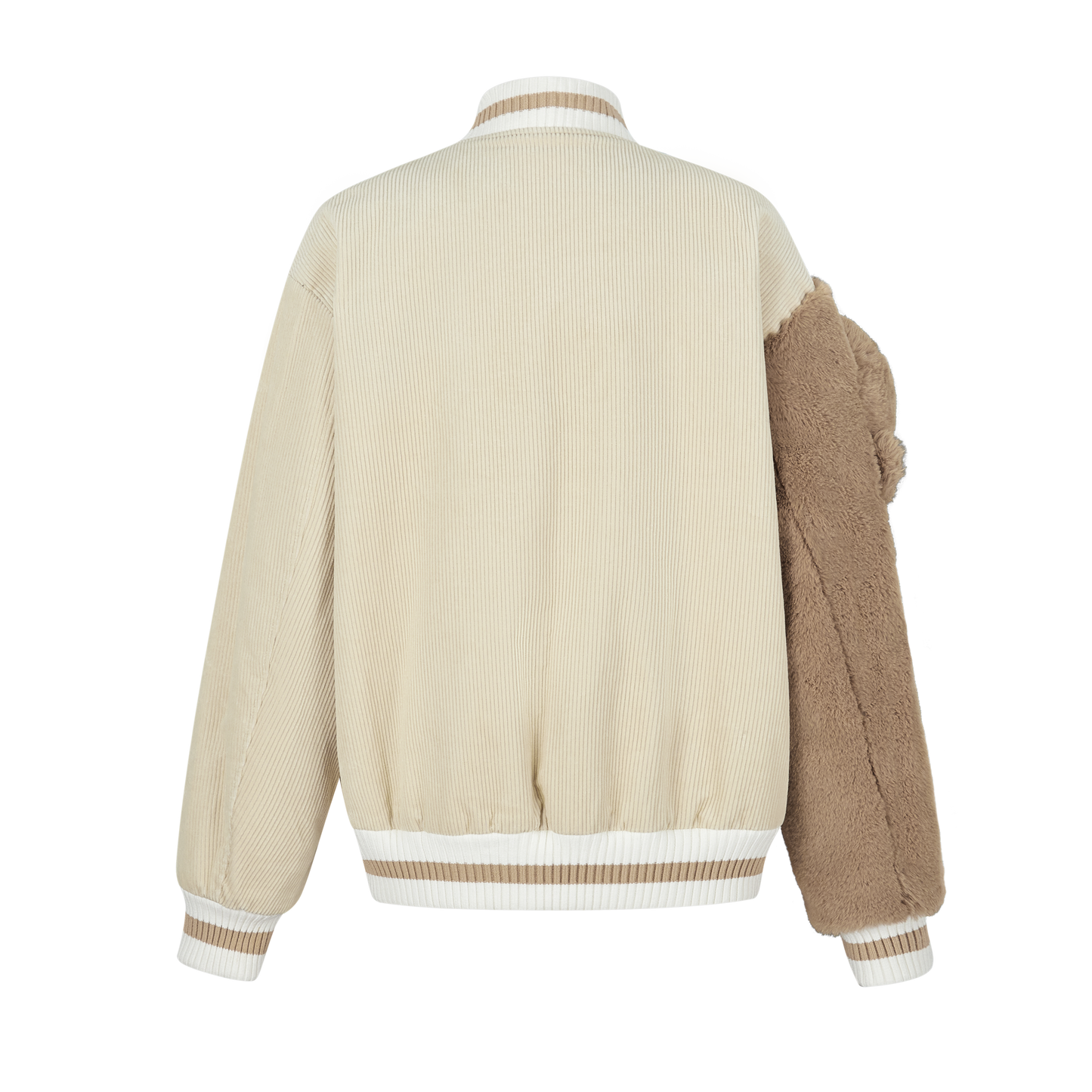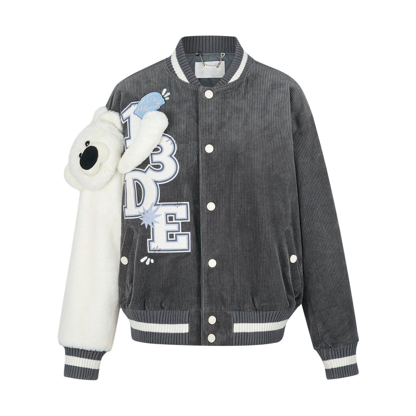 13DE MARZO Bear Sleeve Corduroy Baseball Jacket