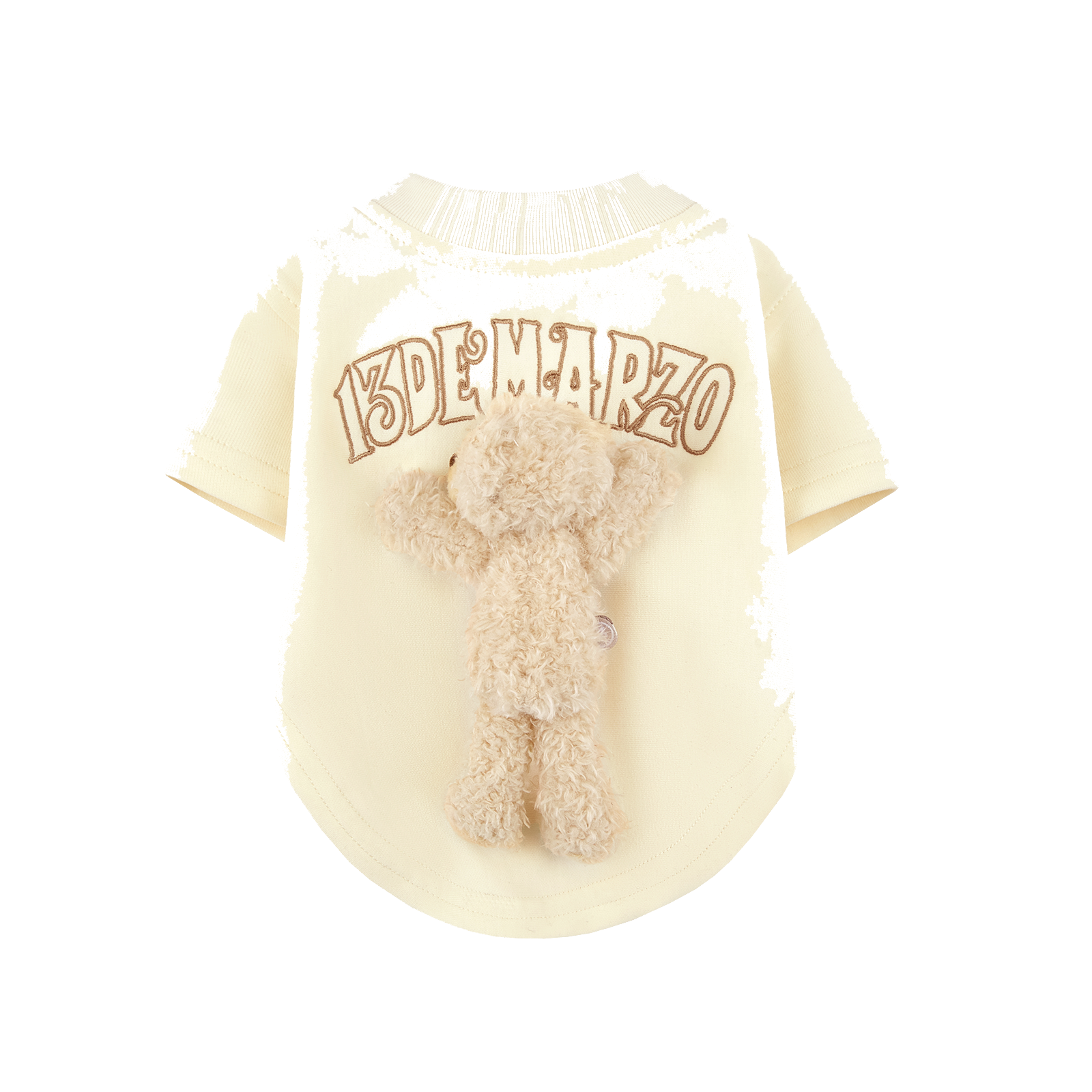 This pet garment is made from a soft, skin-friendly fabric that fits your pet's body shape and allows full freedom of movement. The adorable bear print and "13DE MARZO" brand logo add charm and highlight the distinctive brand identity. Featuring a simple, versatile short-sleeve design, it offers both style and comfort for your pet—perfect for everyday wear or outings. A thoughtful choice for pet parents looking to dress their furry friends in fashionable, cozy attire.