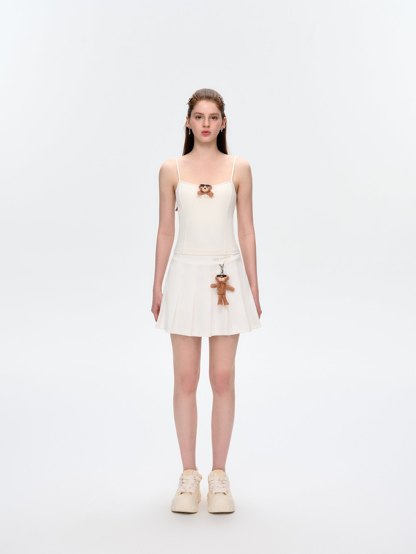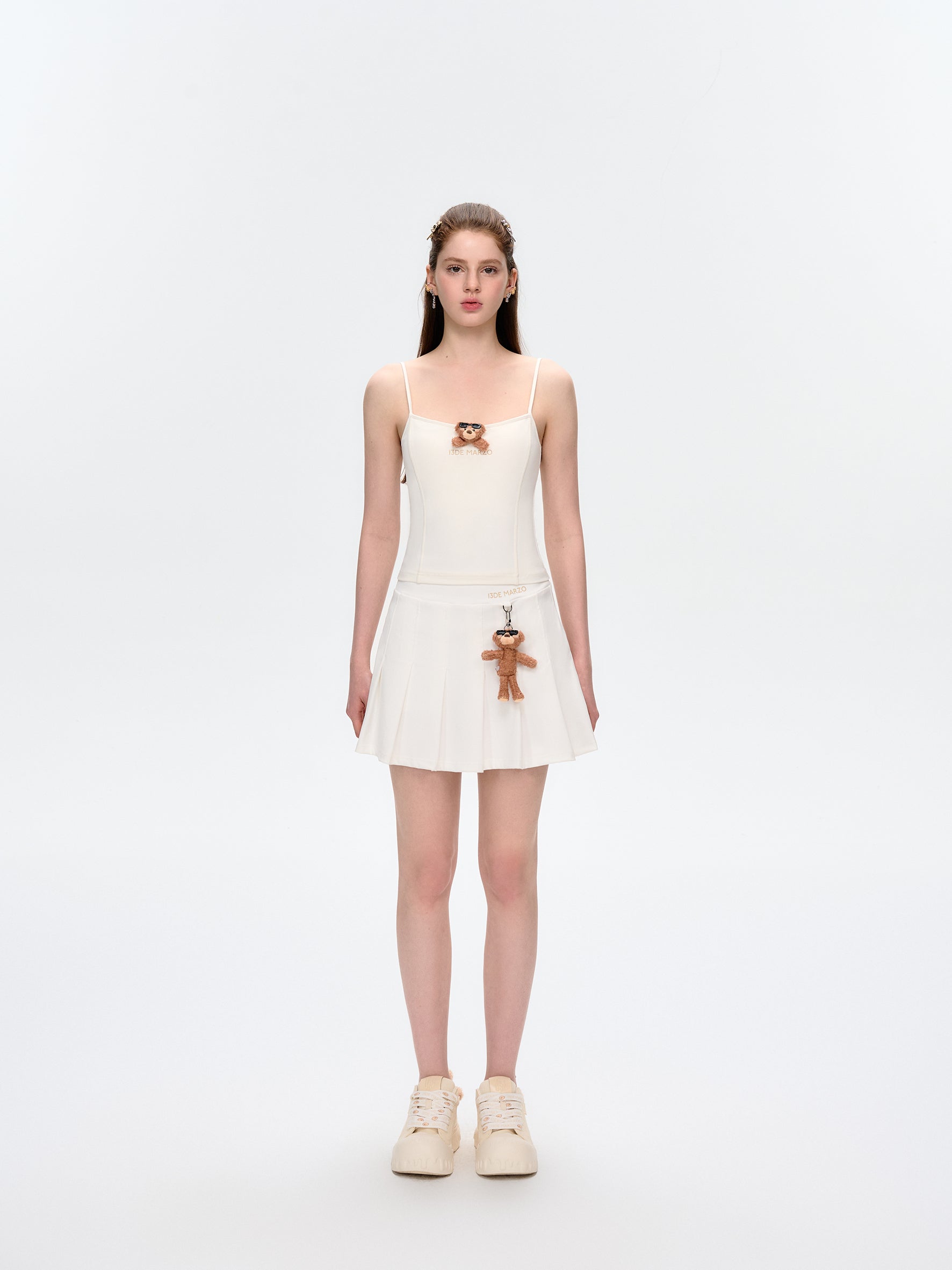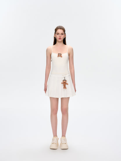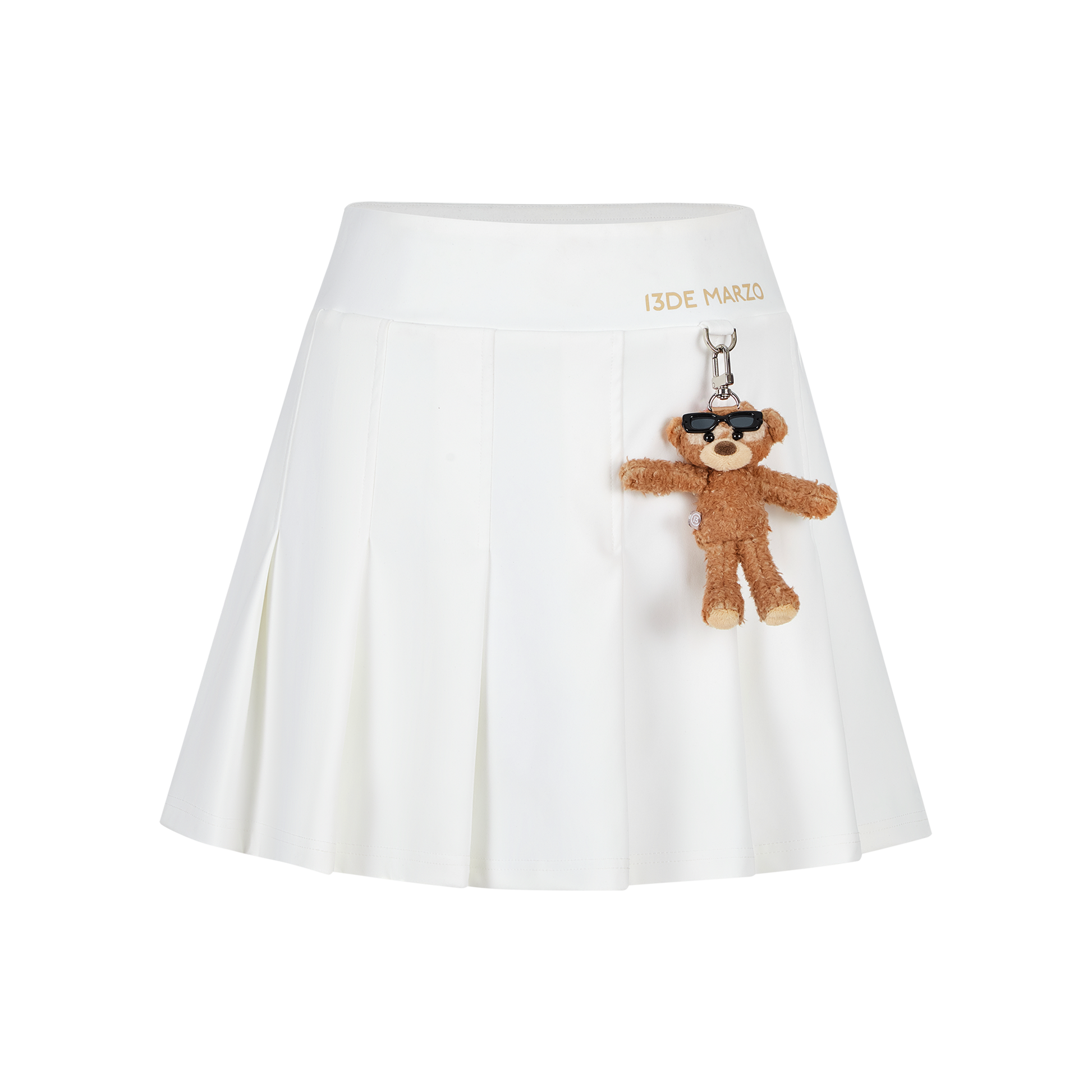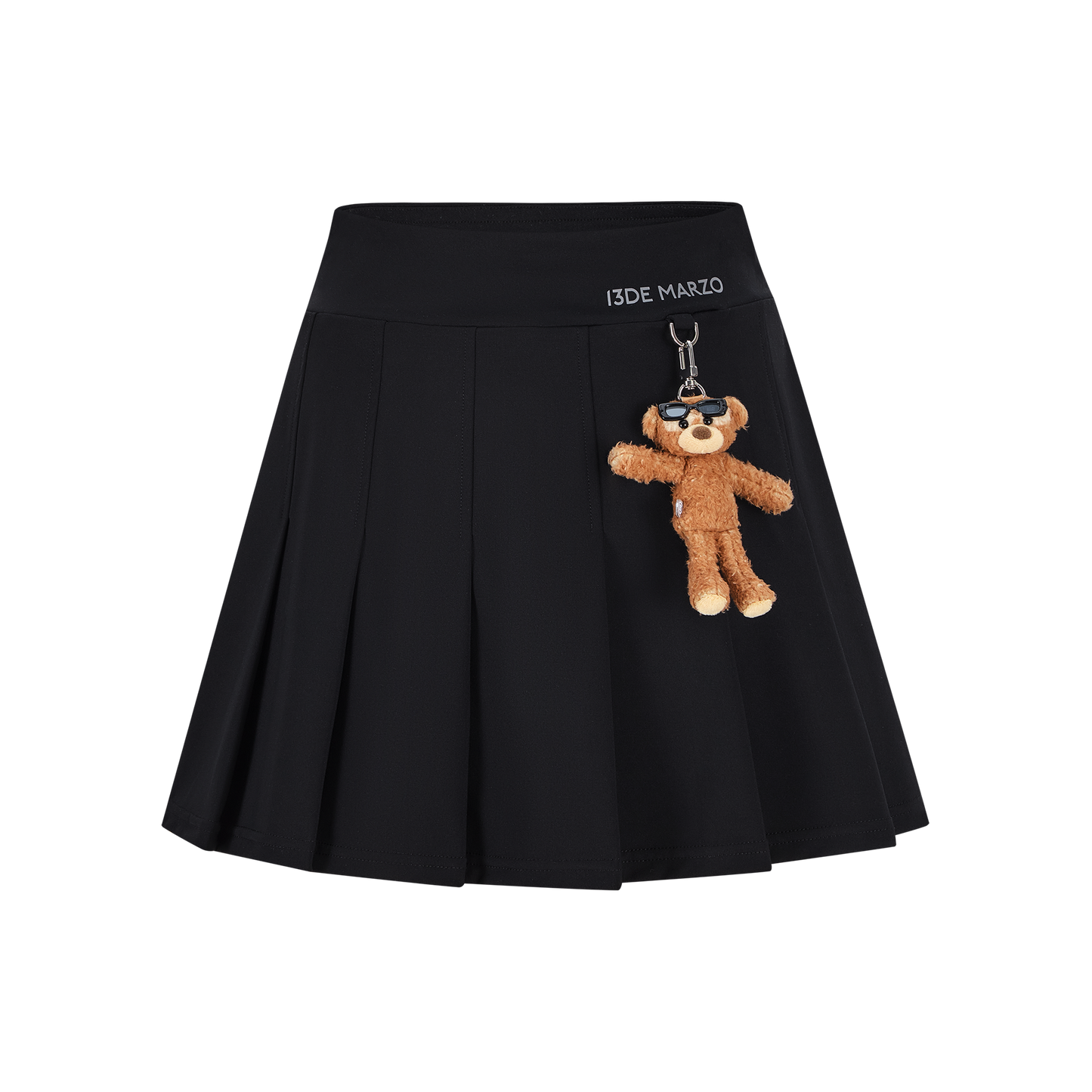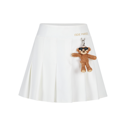 This pleated mini skirt is made with lightweight, breathable, and cool-touch fabric—perfect for hot summer days. The pleated A-line design offers a slimming effect and flows gracefully with movement. A detachable sunburned bear charm adds a playful and stylish touch. Ideal for sunny days with comfort and charm.