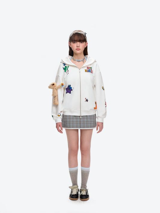 13DE MARZO RONRON Bear All-Over Zipped Hoodie