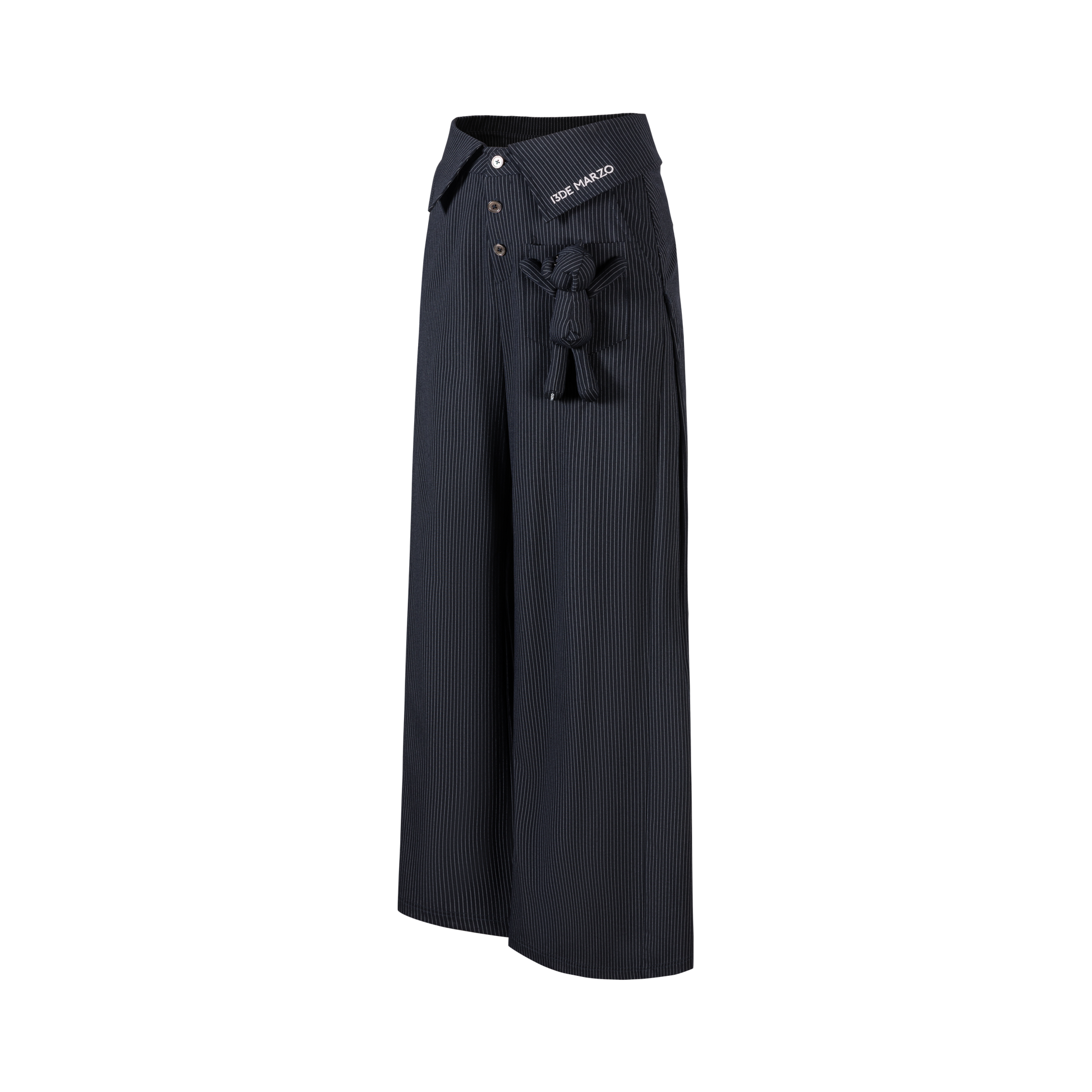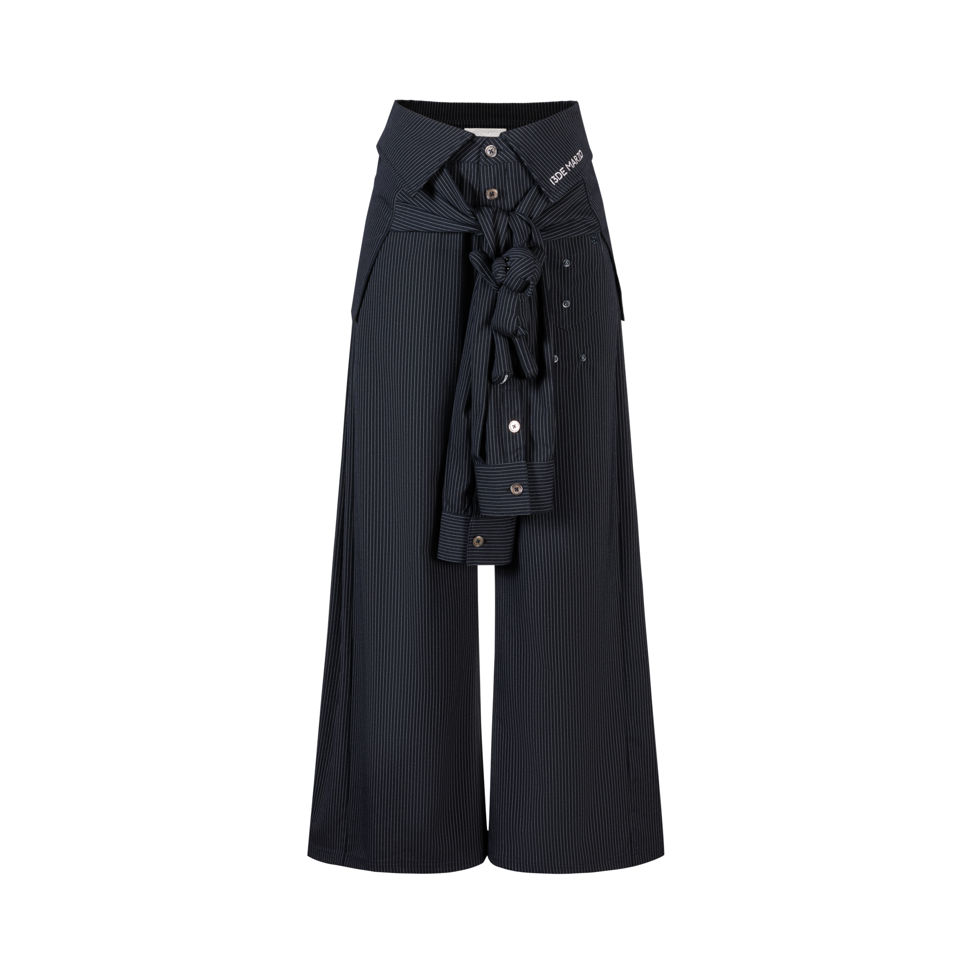 These faux-shirt style casual trousers feature a wide-leg silhouette that flatters a variety of leg shapes, visually elongating the legs while offering a relaxed and comfortable fit. The waistband is designed to resemble a V-shaped shirt collar, adding a tailored touch, while the detachable shirt-sleeve panels follow current trends and bring a playful, creative twist to the overall look.