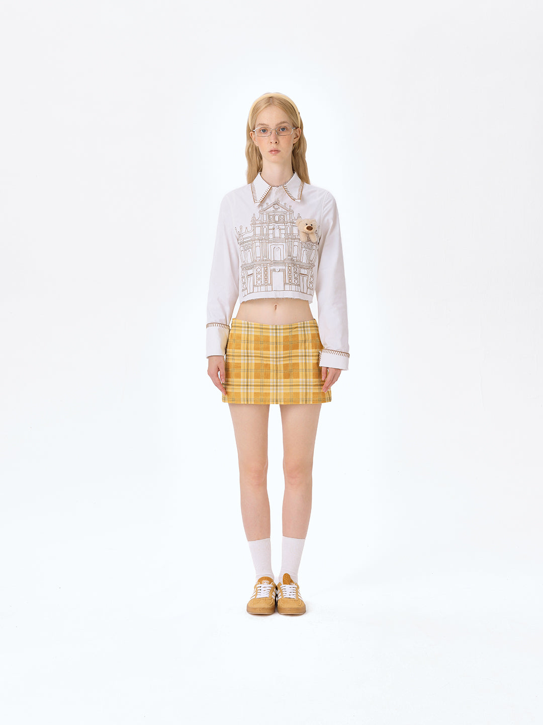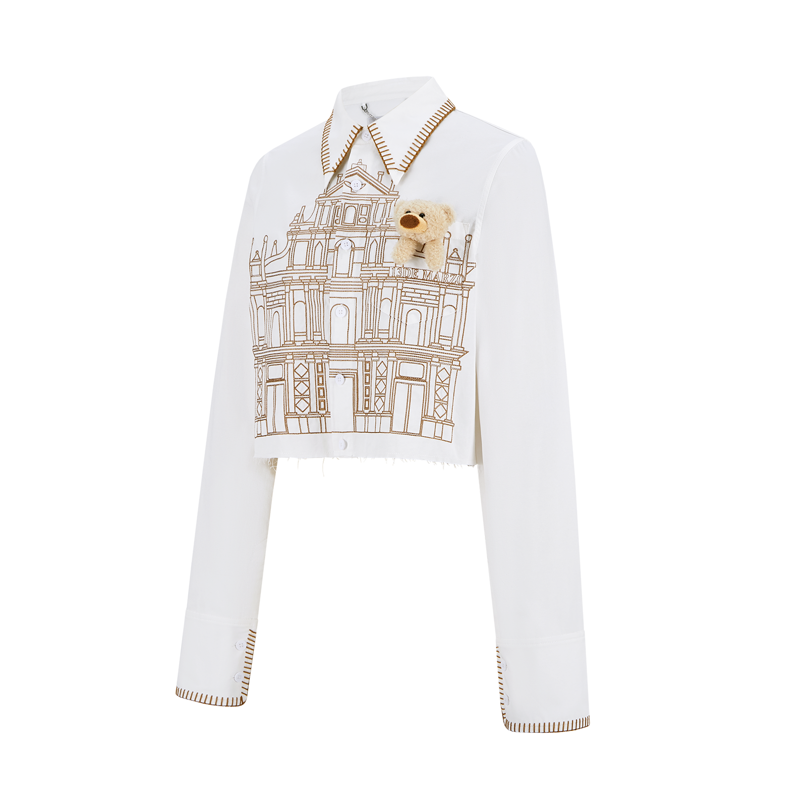 Design Concept: This limited-edition shirt captures the essence of Macau by centering on its iconic landmark, the Ruins of St. Paul's. The design faithfully reproduces the site’s historical weight and architectural beauty, blending it with a playful bear motif to create a piece that is both a cultural keepsake and a fashion statement. It allows Macau's heritage to come alive through wearable art. The cropped shirt silhouette aligns with current trends, optimizing body proportions for a sharp, contemporary look.