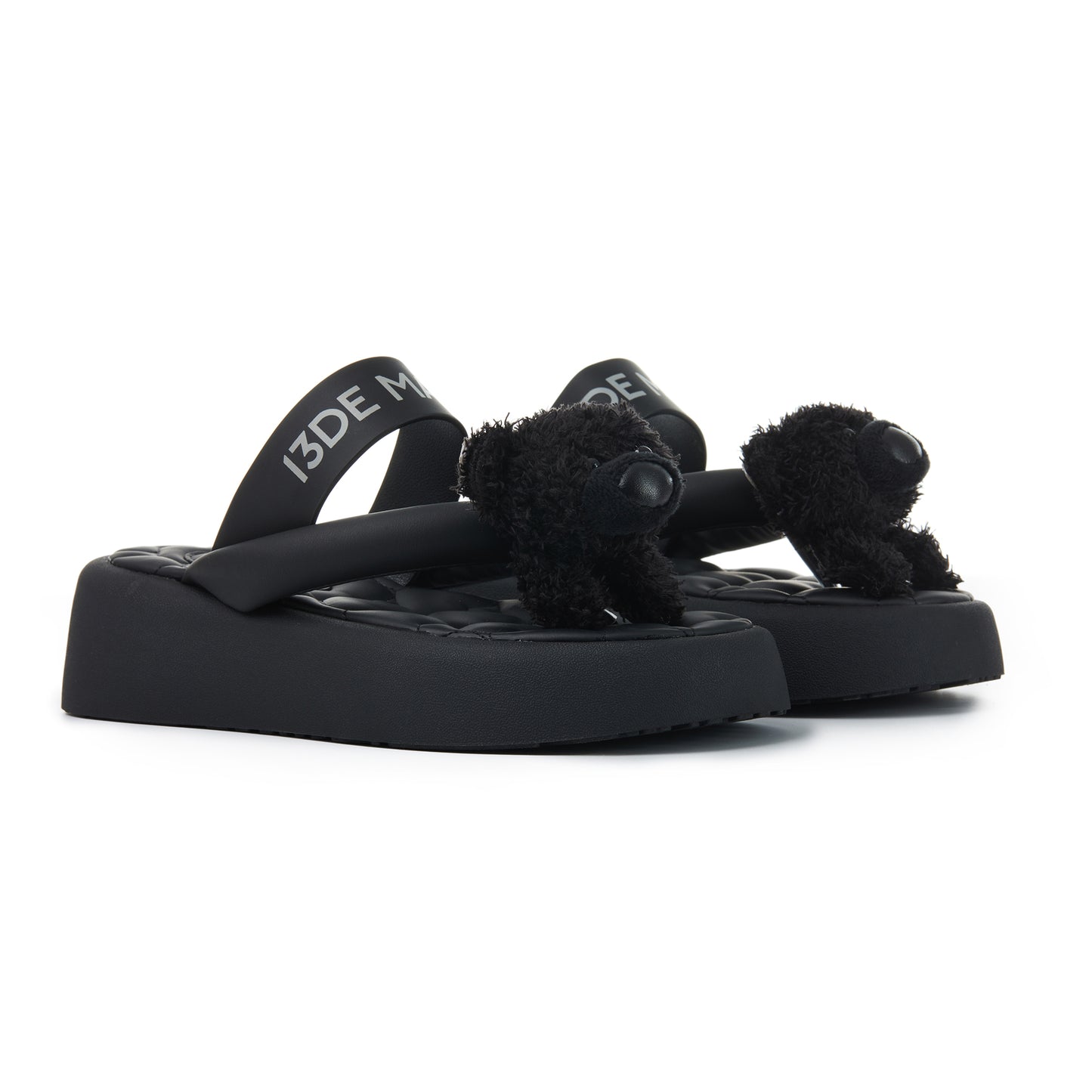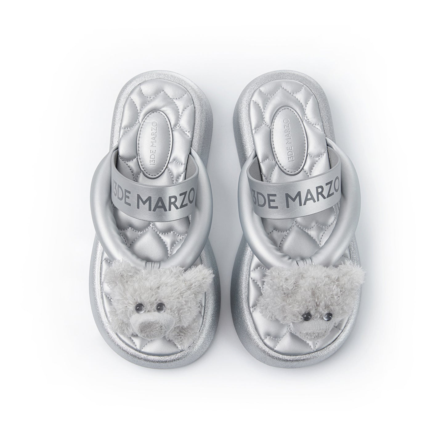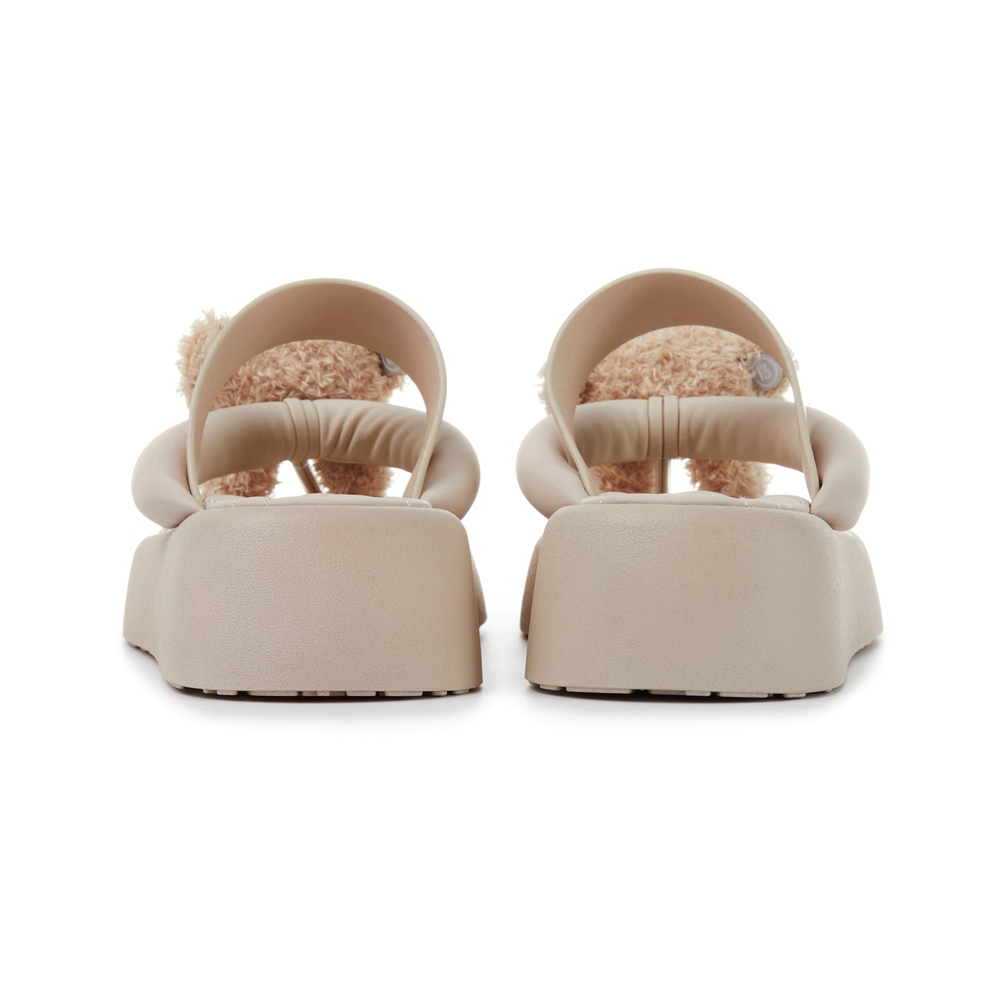 These leather flip-flops combine fashion and quality with a thick sole for added height and comfort. The fixed bear charm adds playful personality, while heart-stitched insoles provide softness. Custom logo patterns on the sole and embossed branding on the strap highlight the premium design. Perfect for casual or trendy outfits.