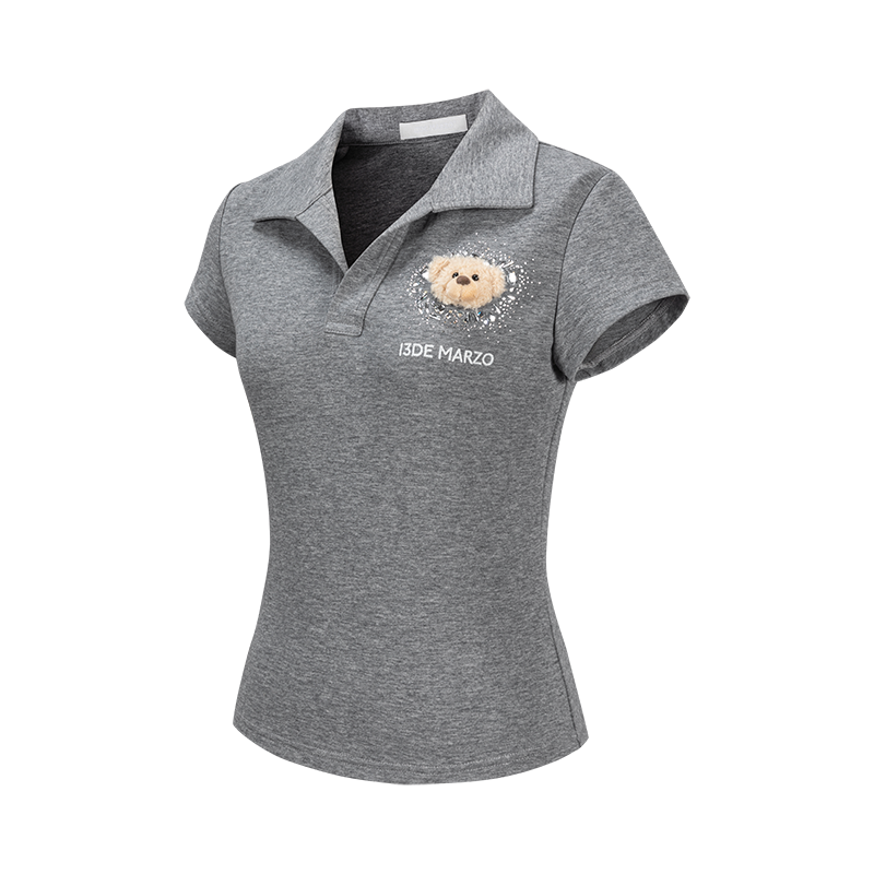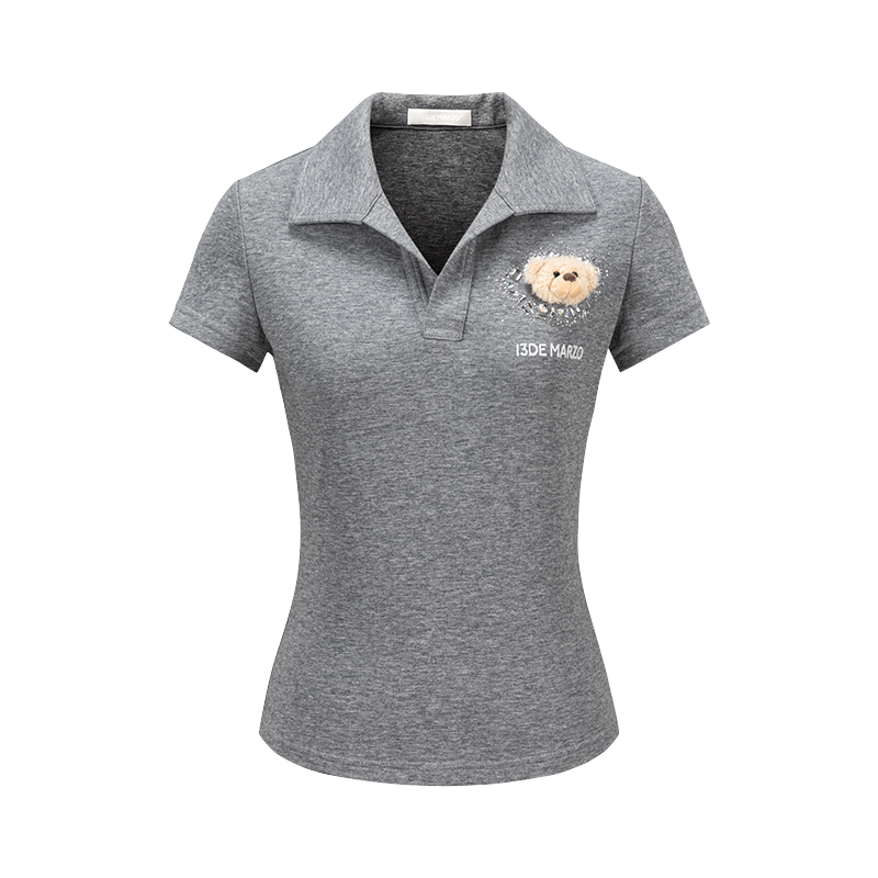 This slim-fit crystal-embellished polo tee strikes the perfect balance between cleanfit aesthetics and playful sophistication. The tailored cut follows a minimalist logic, with a slightly stretchy fabric that skims the body without constraint—embodying the cleanfit principle of simplicity with purpose. The scattering of crystals around the chest bear motif is a subtle expression of dedication—not an overload of glamour, but a sprinkle of sparkle that infuses a basic style with clever whimsy, letting cuteness and elegance resonate in the details. It’s both a versatile everyday essential and a distinctive style statement, seamlessly fitting a wardrobe that values simplicity yet craves detail. A piece that beautifully marries practicality with aesthetic expression.