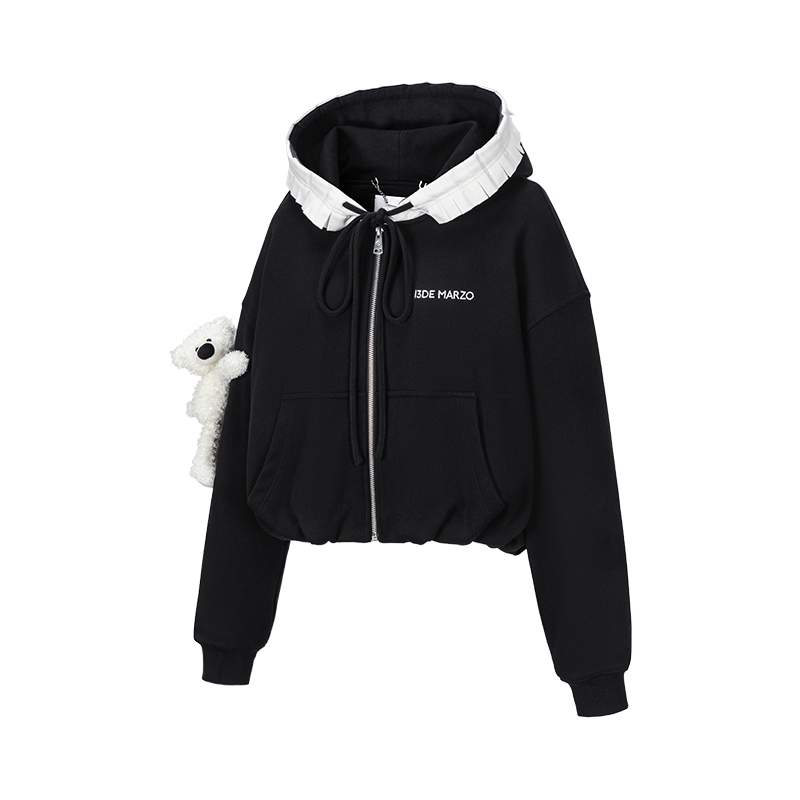 13DE MARZO Lace Edge Zip Hoodie Black