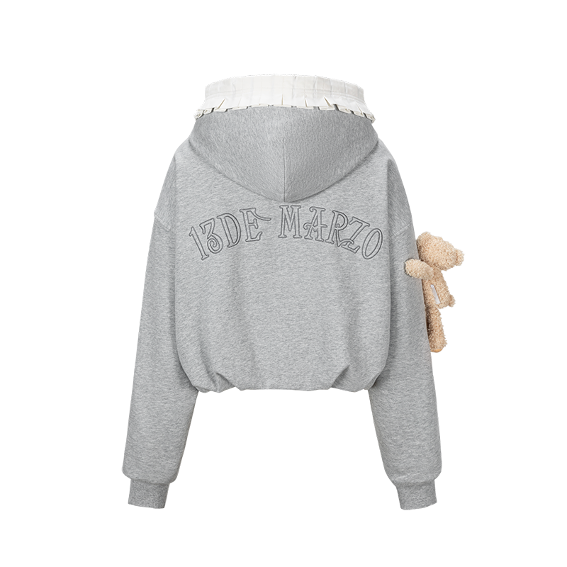 13DE MARZO Lace Edge Zip Hoodie Grey