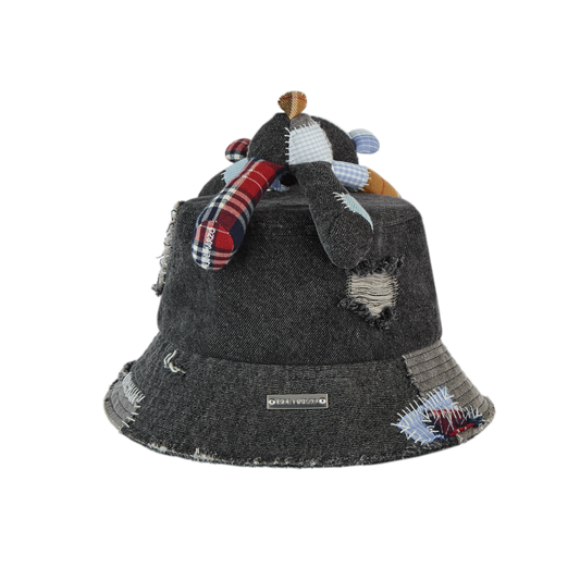 13DE MARZO Bear In Wormhole Denim Bucket Hat