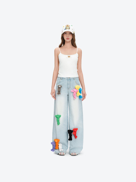 13DE MARZO Colorful All-Over Bear Print Jeans Blue