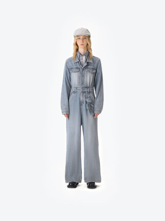 13DE MARZO Bear Denim Jumpsuit Navy Blue