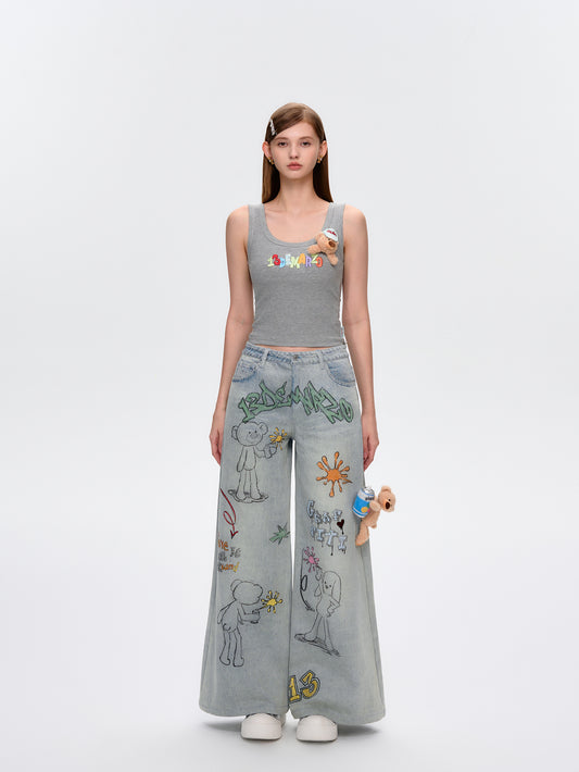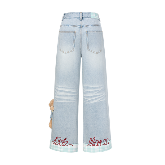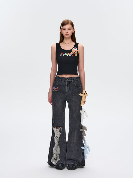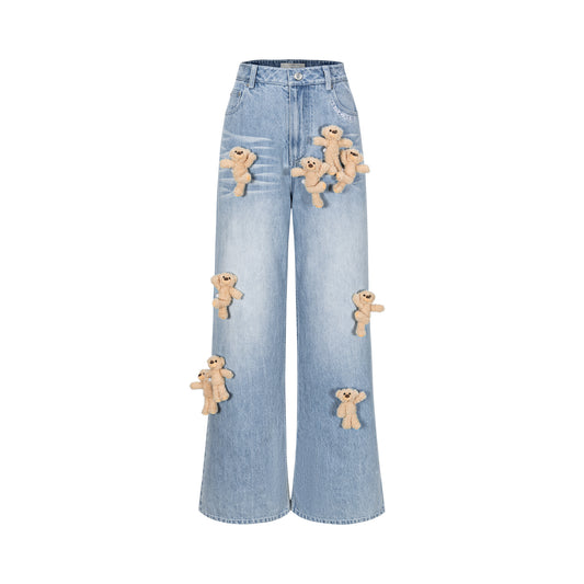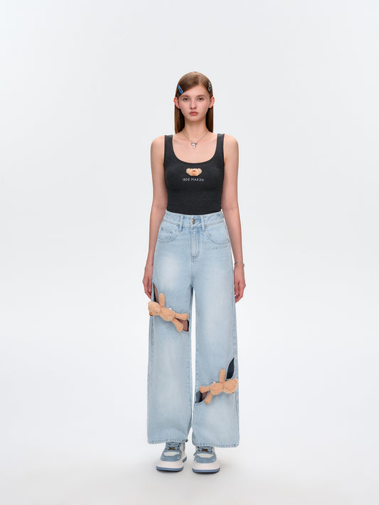 13DE MARZO Hollow-out Bear Jeans
