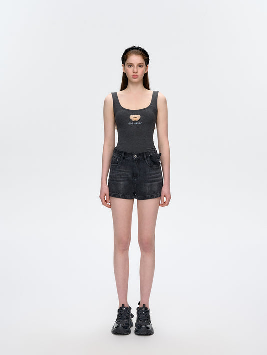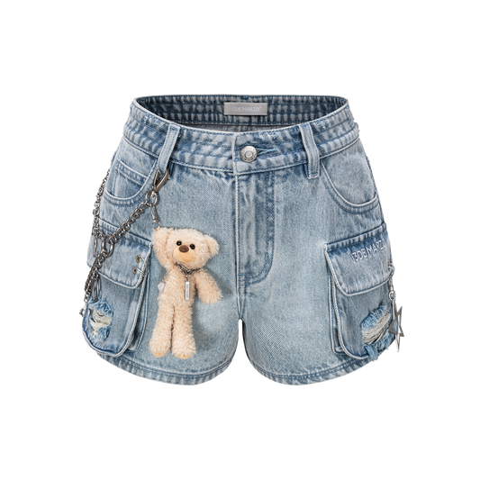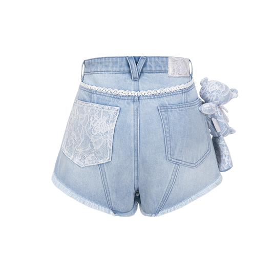 13DE MARZO Bear Lacy Denim Shorts