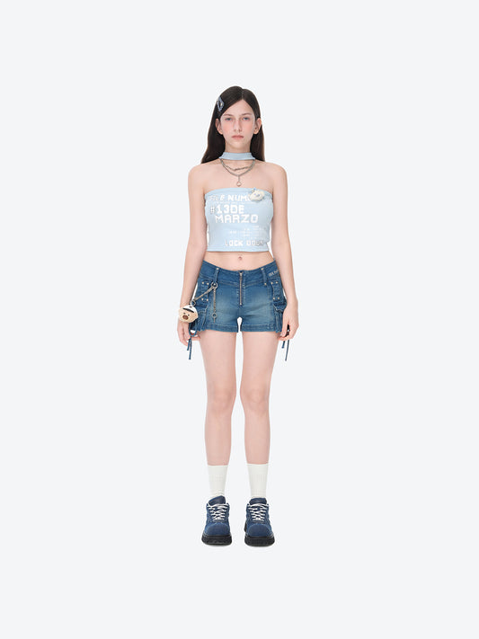 13DE MARZO V-Waist Sheriff Bear Jorts Navy Blue