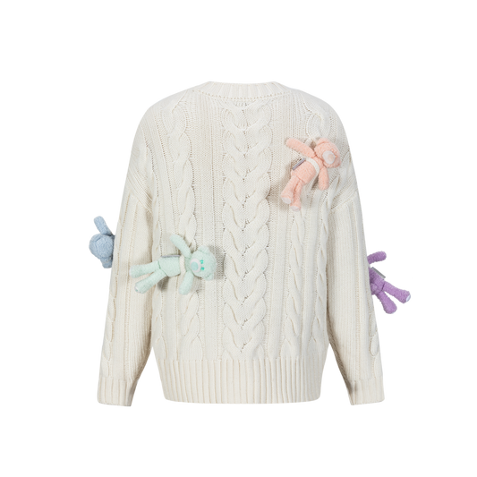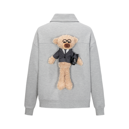 13DE MARZO Fair Isle Bear Zip Knit Hoodie