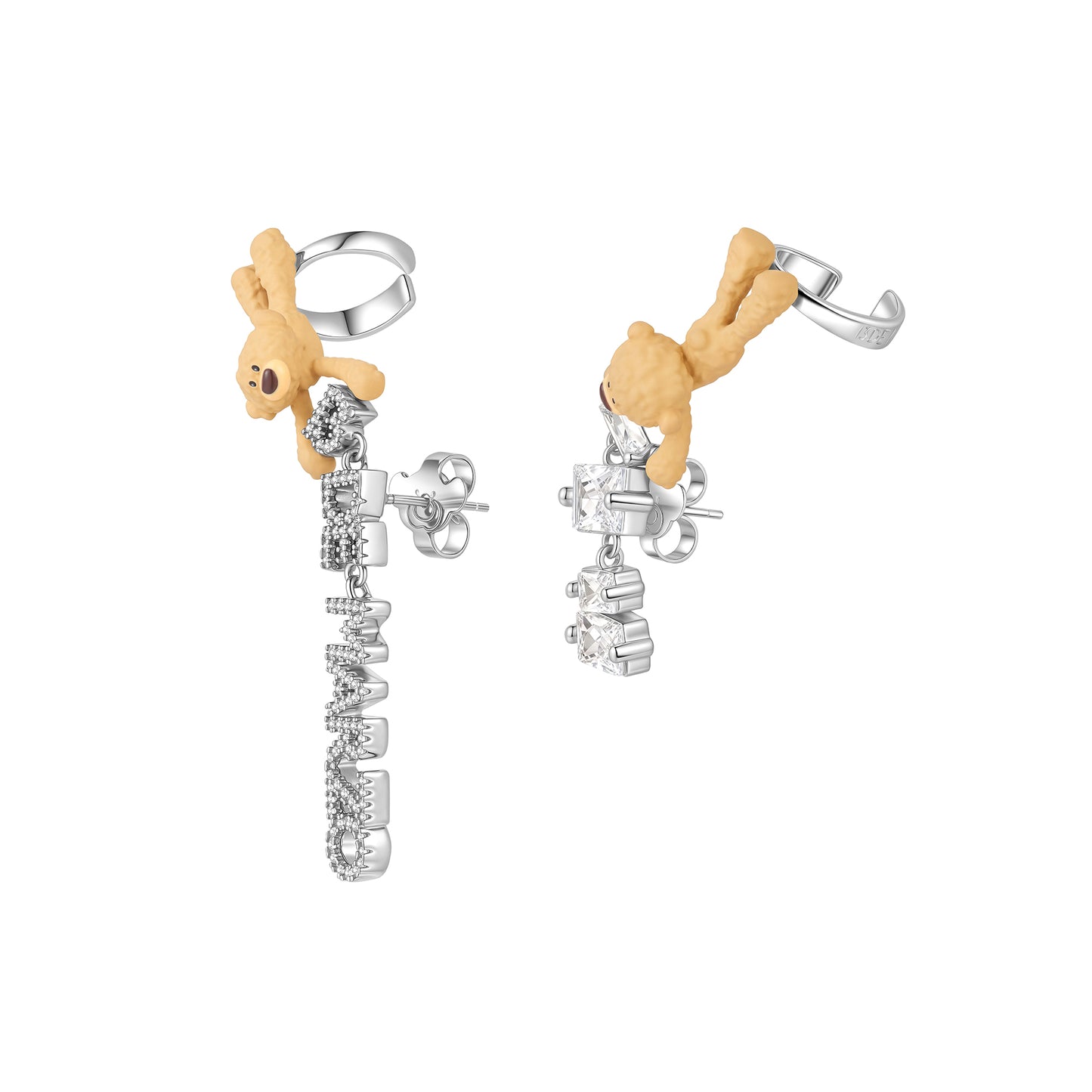 13DE MARZO Bear Zircon Unshaped Ear Stud