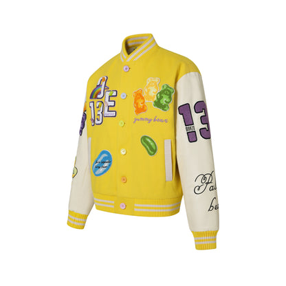 13DE MARZO Big Gummy Bear Baseball Varsity Jacket