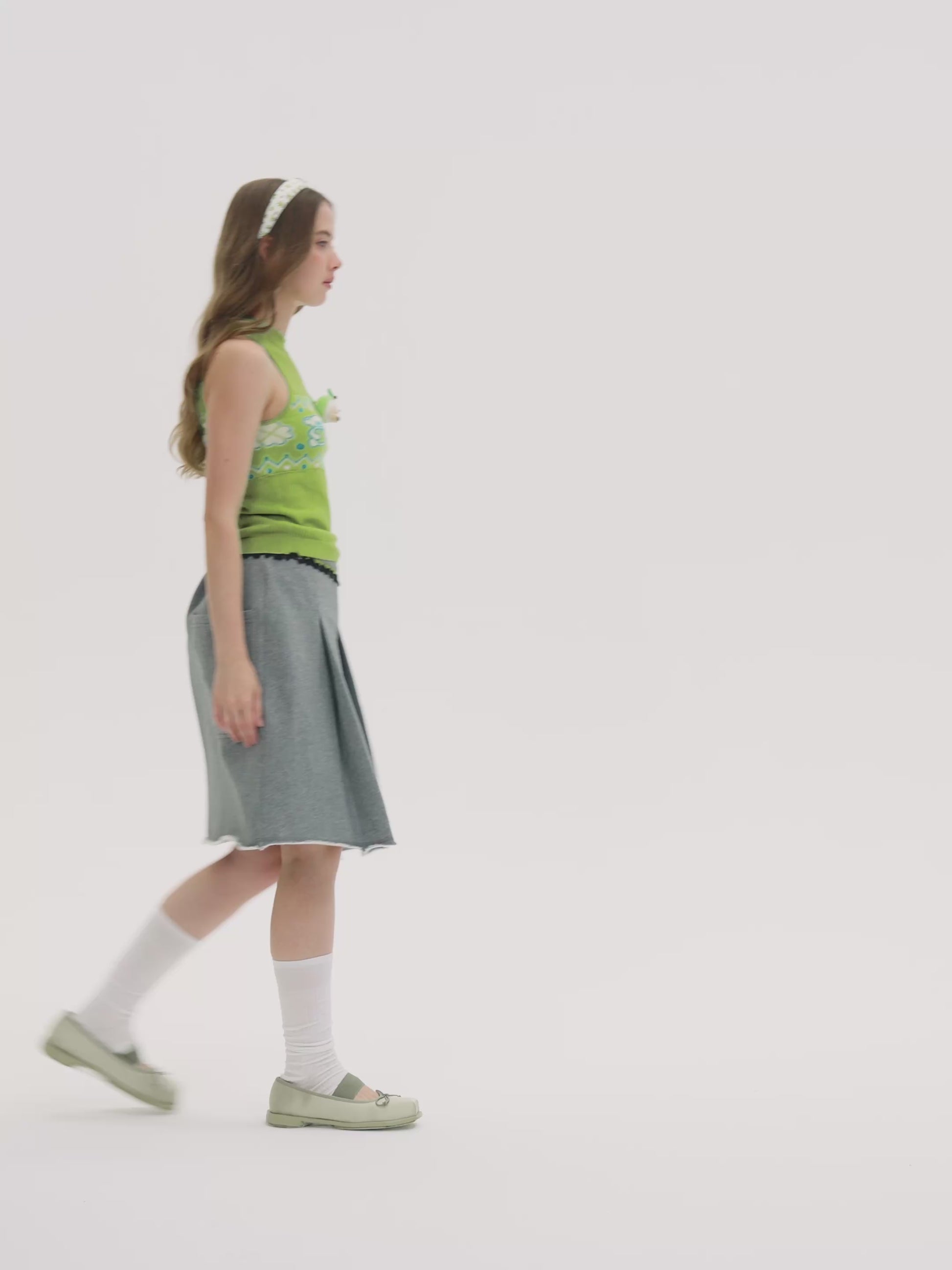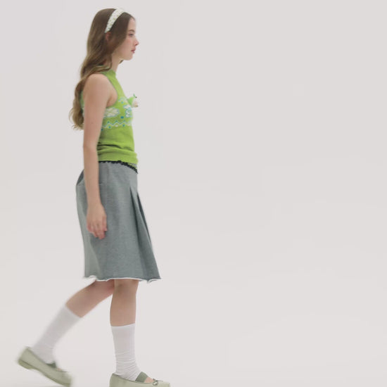 Featuring a vertical striped texture and a sleeveless, mock-neck tank silhouette, this top is built around a dopamine color palette. The body showcases Fair Isle jacquard motifs, including a strawberry-holding bear pattern that echoes the 3D doll embellishment, complemented by an embroidered brand logo at the front. Made with 70% Lyocell yarn—soft against the skin, lightweight, and with excellent drape—it offers a cooling, breathable feel for summer wear. The jacquard Fair Isle pattern is executed with refined craftsmanship, while the detachable doll allows for flexible decorative styling. The dopamine pink colorway, combined with the playful bear Fair Isle design, creates a sweet and energetic look. The scented bead adds a delightful olfactory touch. The sleeveless silhouette adapts well to multi-season layering, and the detachable ornament meets personalized styling needs.
