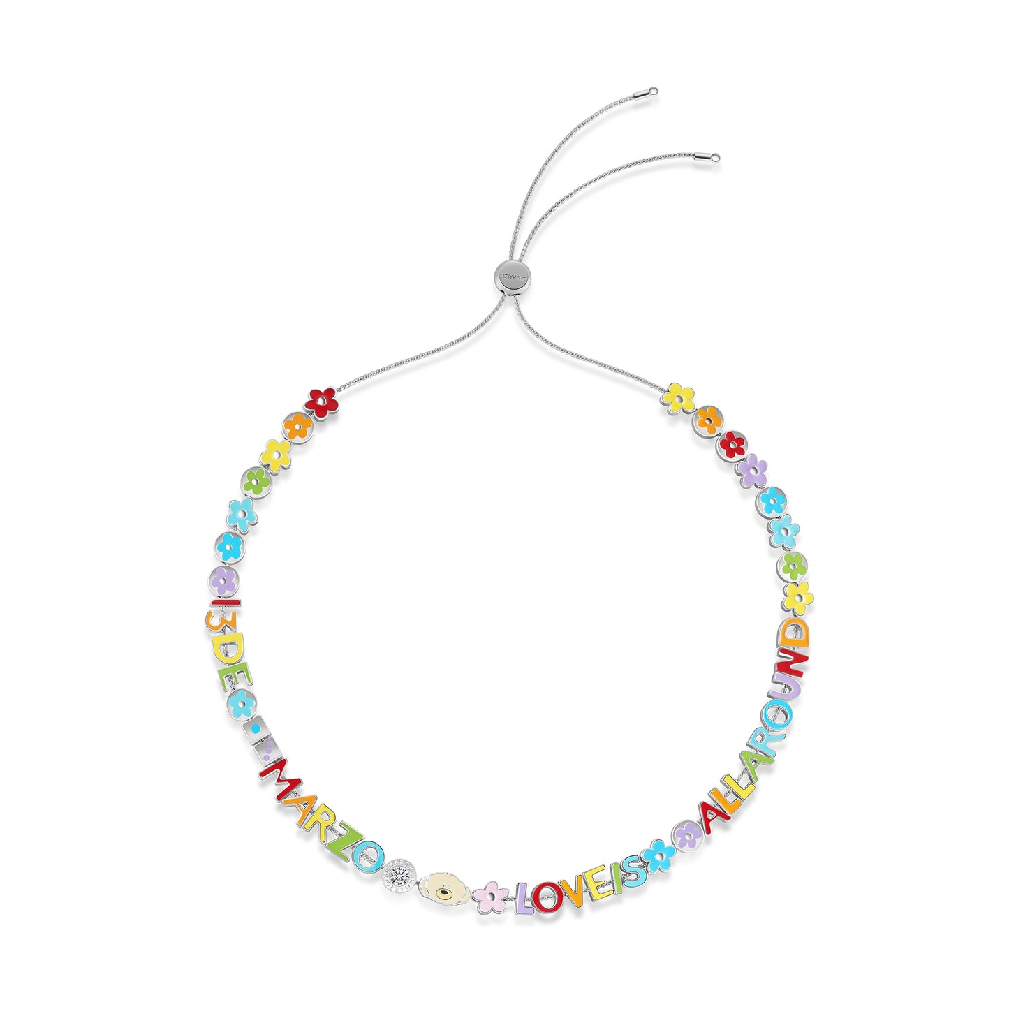 13DE MARZO Color Logo Floral Bear Beaded Necklace