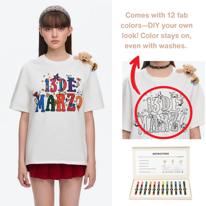 This loose-fit DIY coloring tee features an eye-catching black-and-white print, offering a creative canvas for personalized expression. Choose your own colors and bring your design to life—whether bold and vibrant or soft and subtle. It's more than a shirt—it's wearable art that celebrates your creativity.