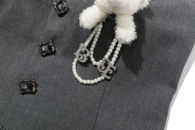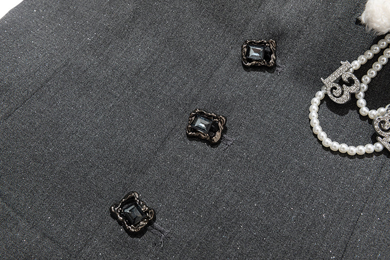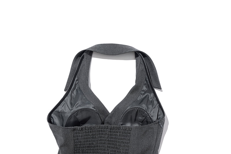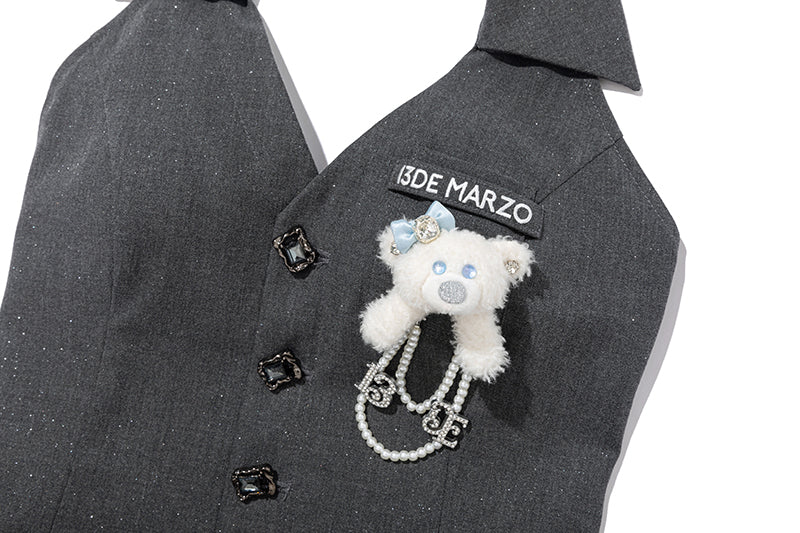 Who can resist a dress that secretly sparkles? This halter neck dress is made from a shimmering fabric that catches the light like wearing a galaxy – it instantly amps up the atmosphere. The waist-cinching design flatters your figure, while the halter neck and off-shoulder style strike the perfect balance between innocence and allure. The pleated skirt adds a youthful, energetic touch. It even comes with a detachable bear brooch, letting you switch between sweet and edgy vibes. Perfect for dates or parties, it's guaranteed to photograph beautifully and is a total showstopper. The diamond-like buttons add a delicate, beautiful finish.