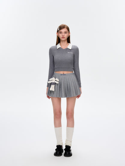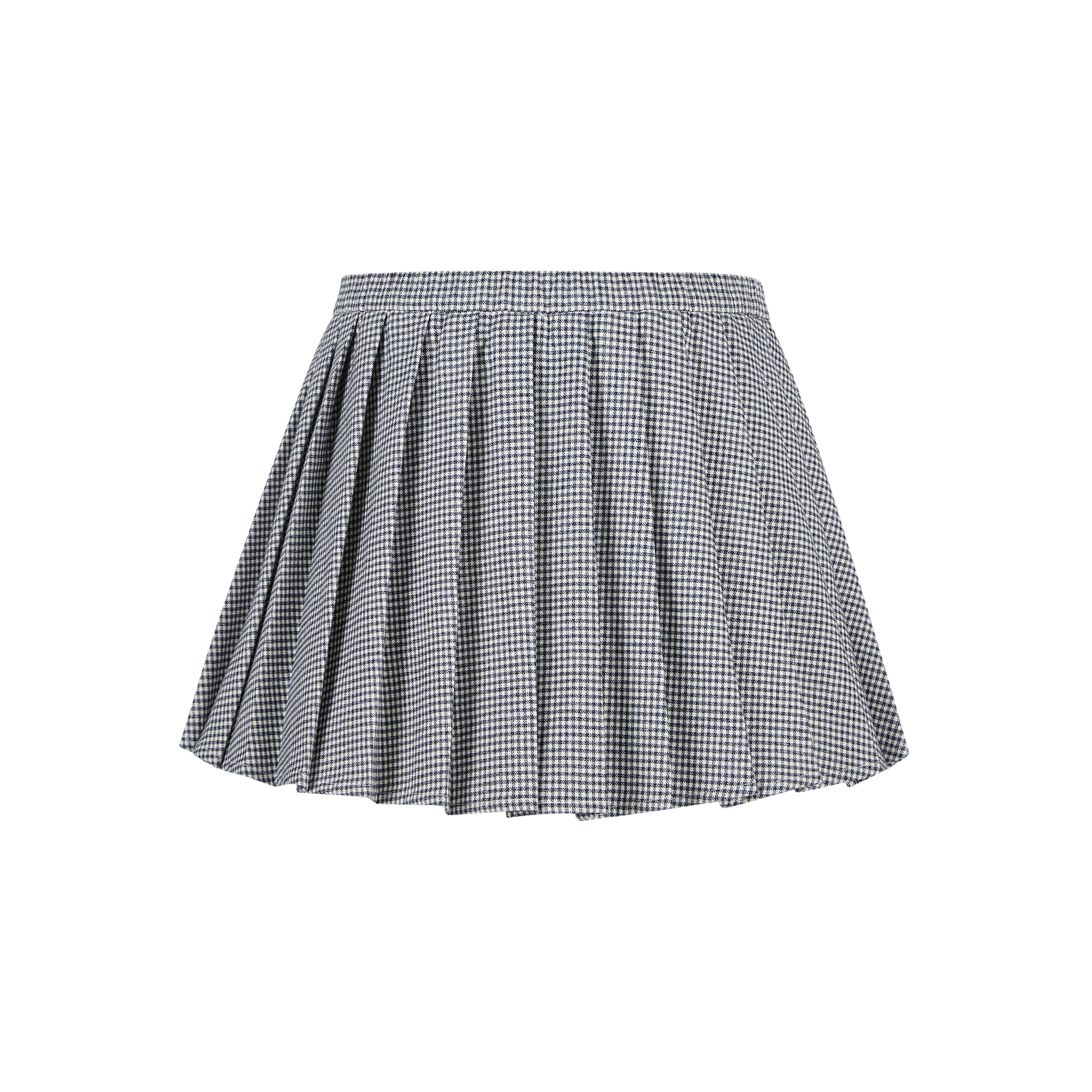 Crafted from fine plaid fabric, this pleated skirt elevates a classic silhouette with a touch of whimsy. The delicate, small-check pattern offers a more refined visual than traditional large plaids, giving the piece a polished, schoolcore-inspired look. The structured pleats create soft volume and movement, while a detachable plush bear charm brings in Doozoo’s signature playful character.