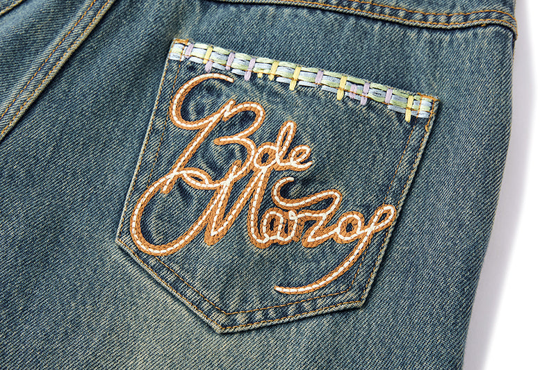 This wide-leg pant is designed to break the monotony of traditional jeans by blending multiple fashion elements into a boldly individualistic statement piece. Its relaxed, wide-leg silhouette aligns with the current trend of comfortable chic while flattering a variety of body types. The deconstructed patchwork design, inspired by street culture and retro aesthetics, combines different fabrics and patterns to create rich visual texture and a unique artistic vibe. The addition of playful patches and a detachable doll charm injects a dose of whimsy, making the style even more multifaceted. Embroidered text on the back pockets serves as the perfect finishing detail, elevating the design's sophistication and perceived quality. Available in two classic colors, it meets core wardrobe needs while offering versatile styling possibilities—perfect for any occasion that calls for fashion-forward personality.