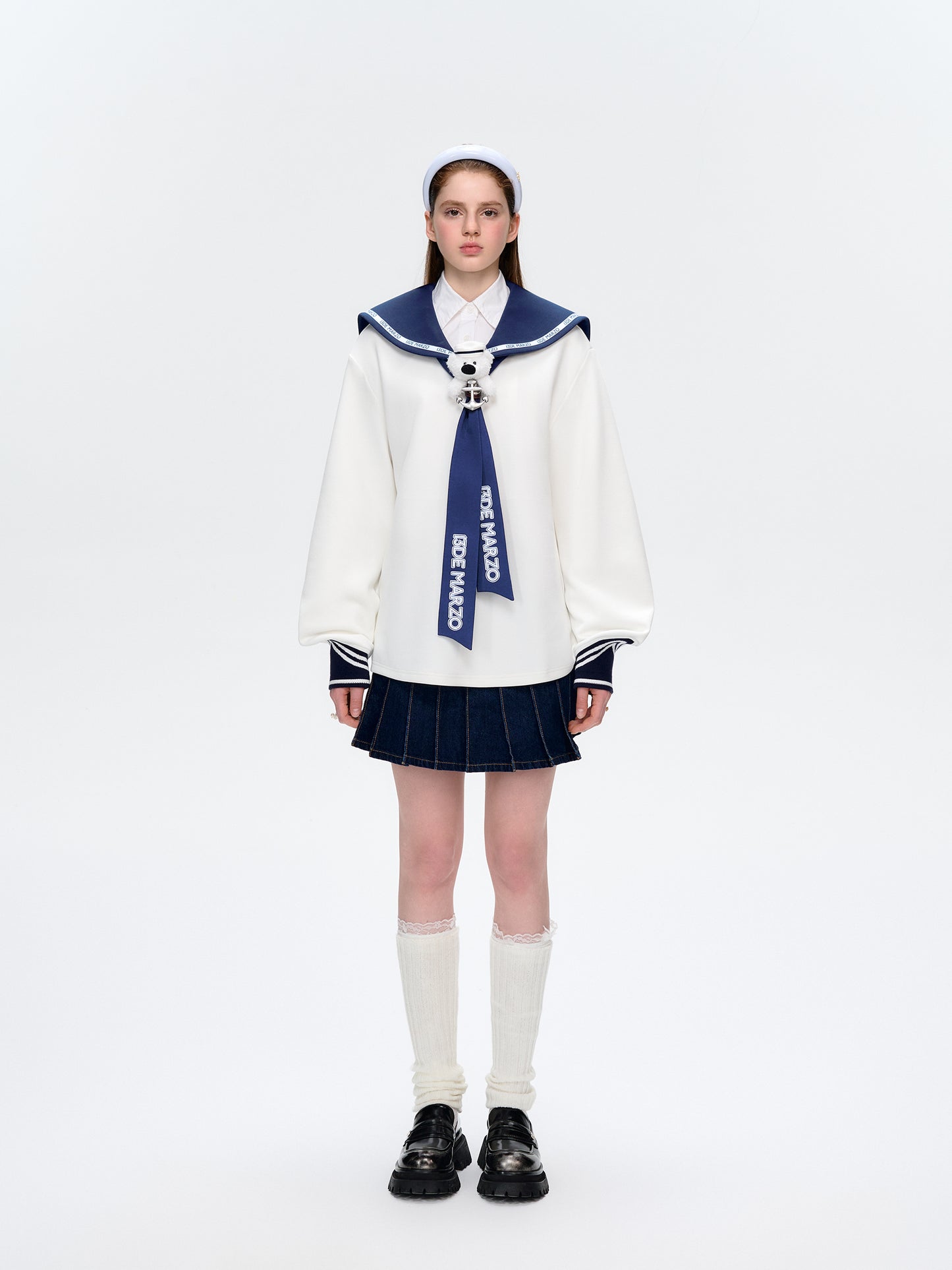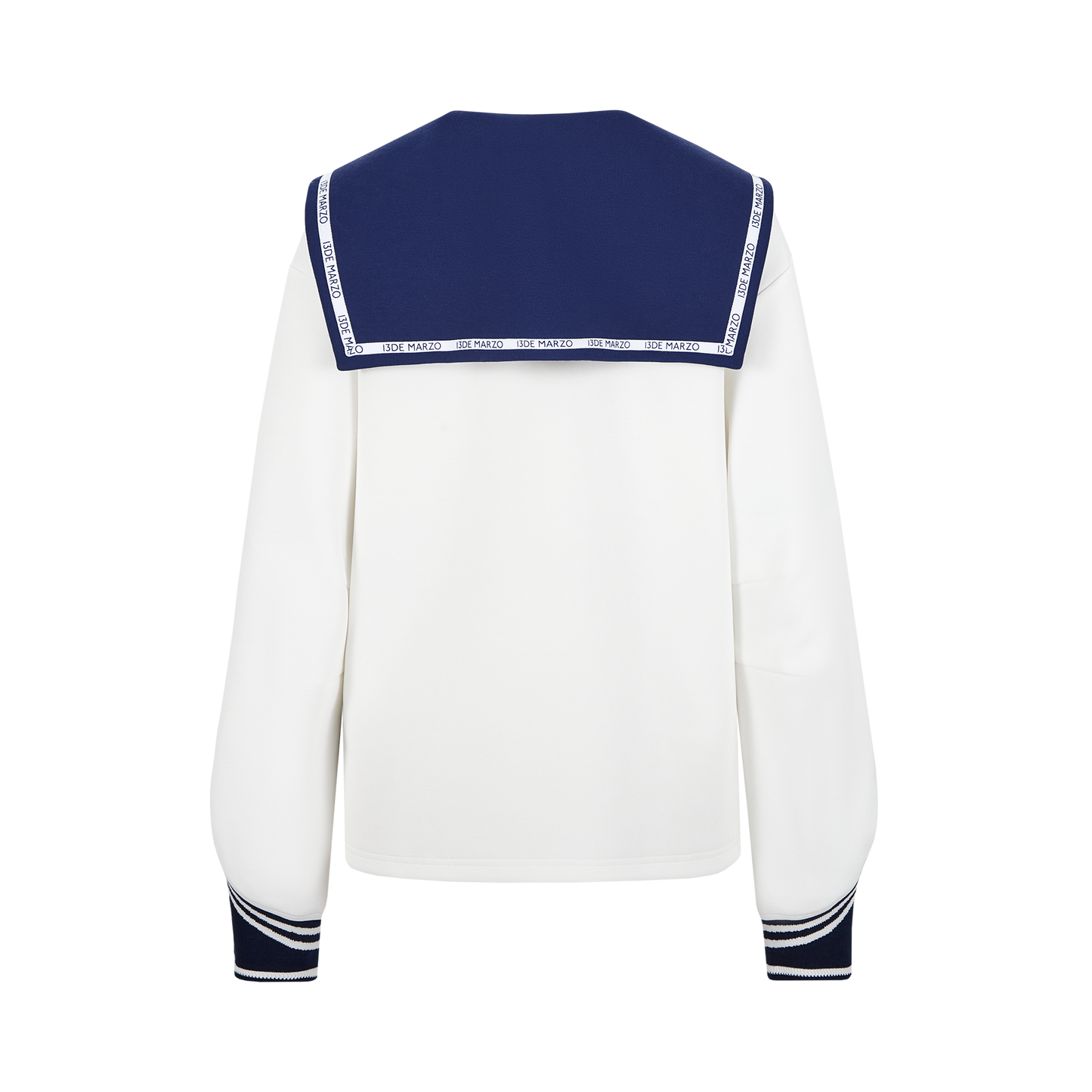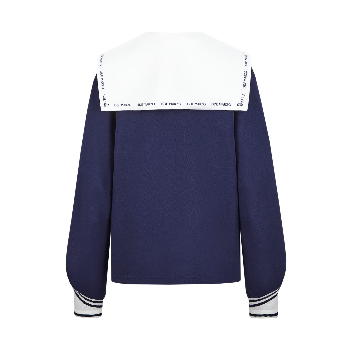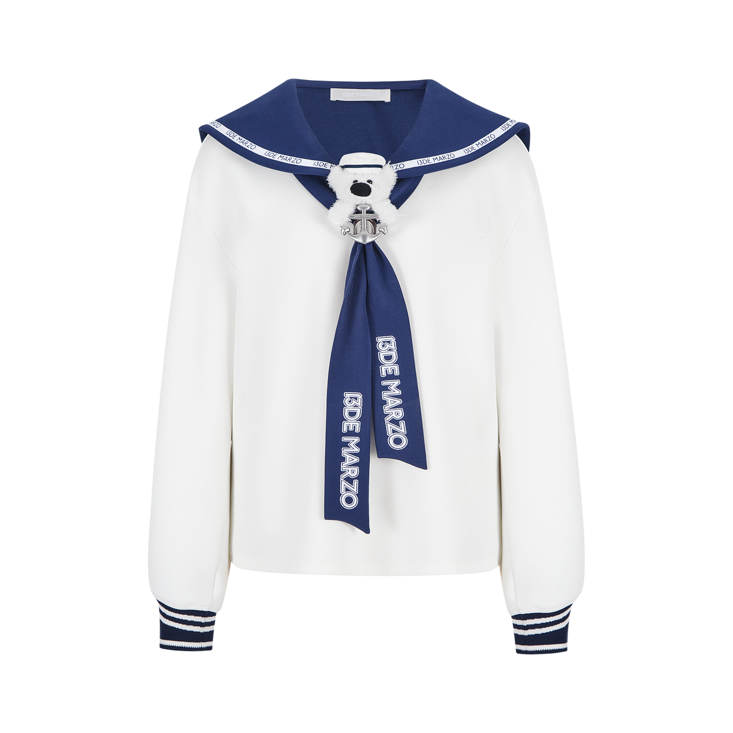 Key features: Striped tape detail, sailor collar, ribbed long sleeves, navy bear head, metal anchor
