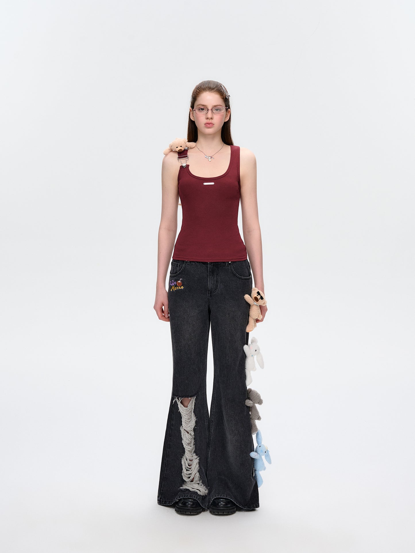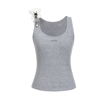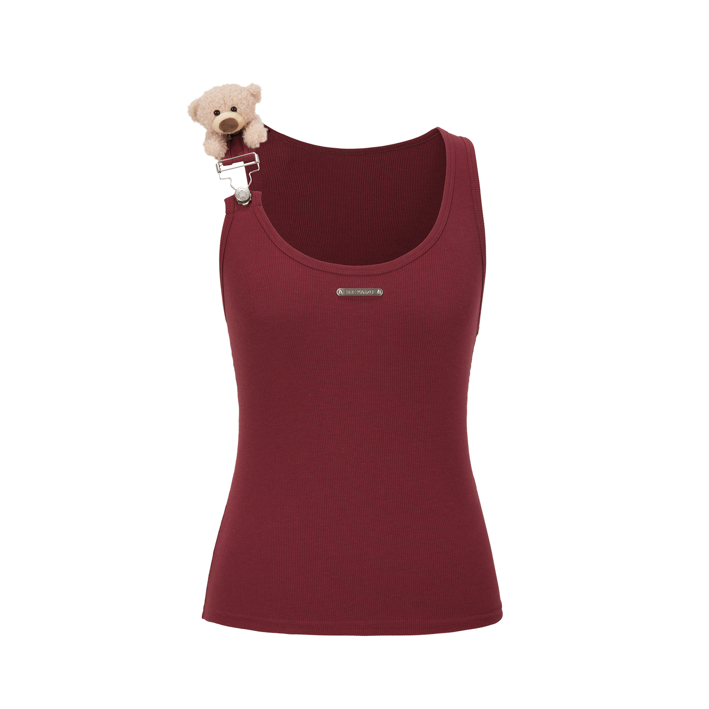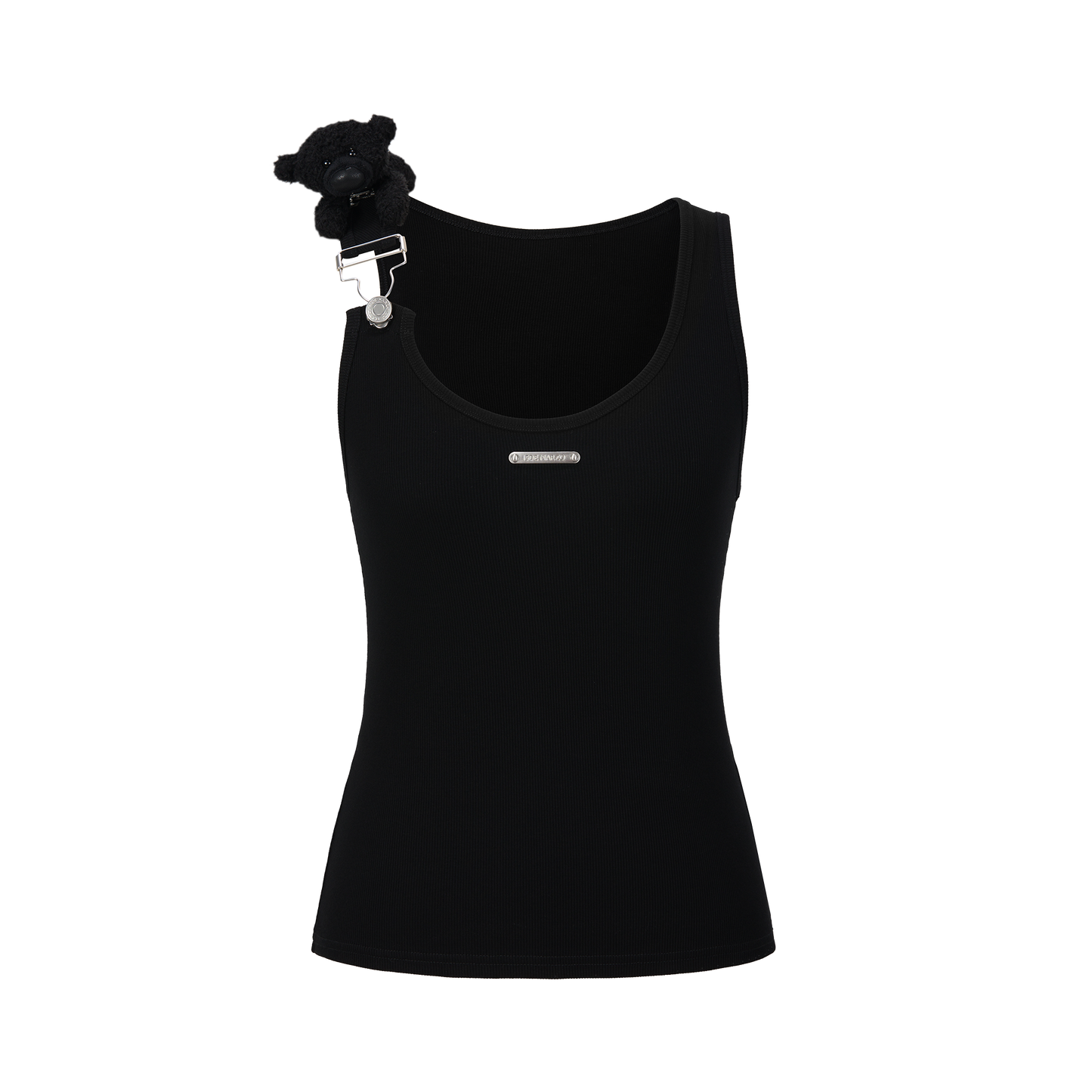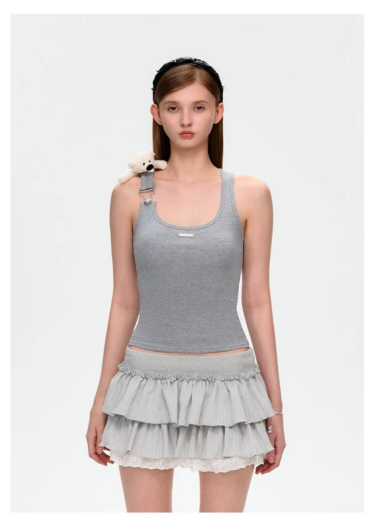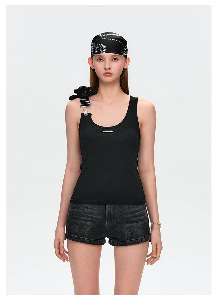 This cami top features a one-shoulder strap with an adjustable metal buckle for a customizable fit. A metal plate at the chest adds a bold punk touch. The mid-length cut offers coverage while flattering the figure, and the soft, stretchy fabric hugs the body comfortably. Finished in retro colors, it perfectly captures a vintage punk vibe.
