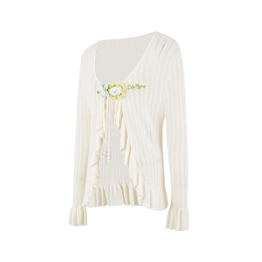 13DE MARZO Floral Lines Hollow Cardigan Beige