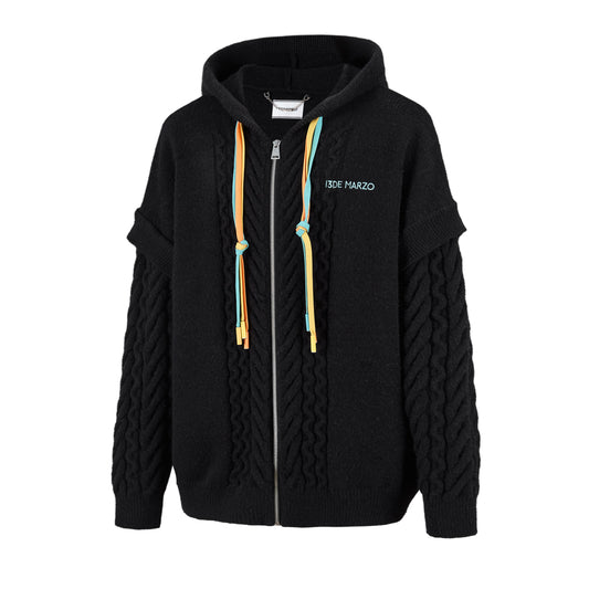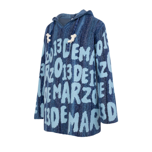 13DE MARZO Logo Printing Stripe Knit Hoodie