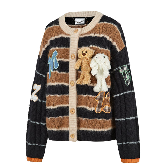 13DE MARZO Kuromi Bear Stripe Knit Cardigan