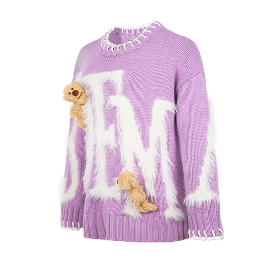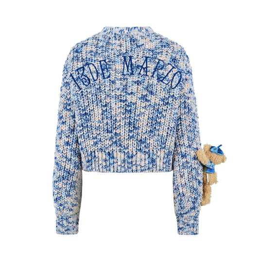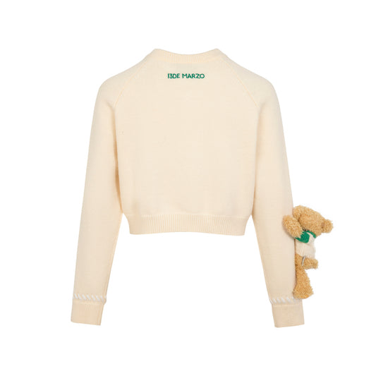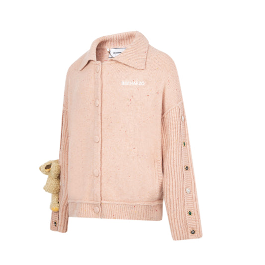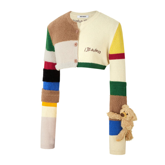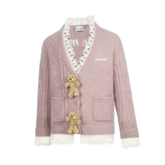 13DE MARZO Monogram Bear Button Furry Cardigan