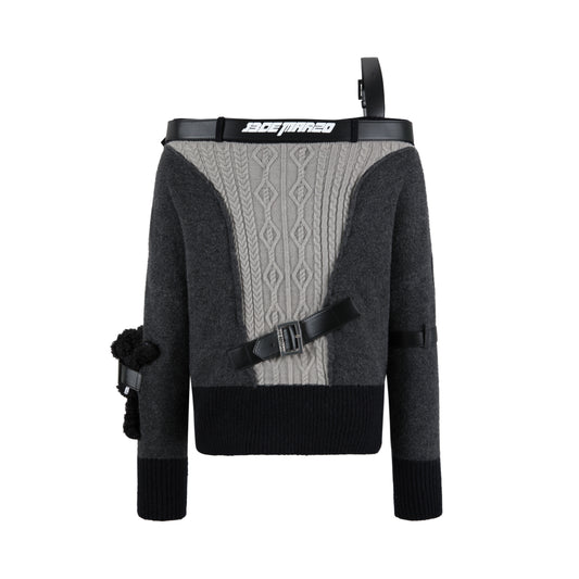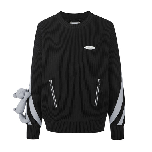 13DE MARZO Bear Knit Suture Layered Hoodie