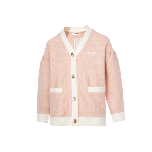 13DE MARZO Fancy Colored Artificial Diamond Button Cardigan