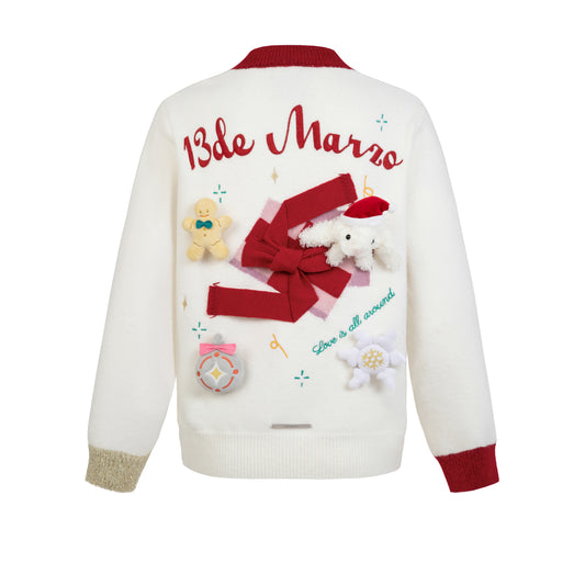 13DE MARZO Christmas Gift Webbing Knit Cardigan