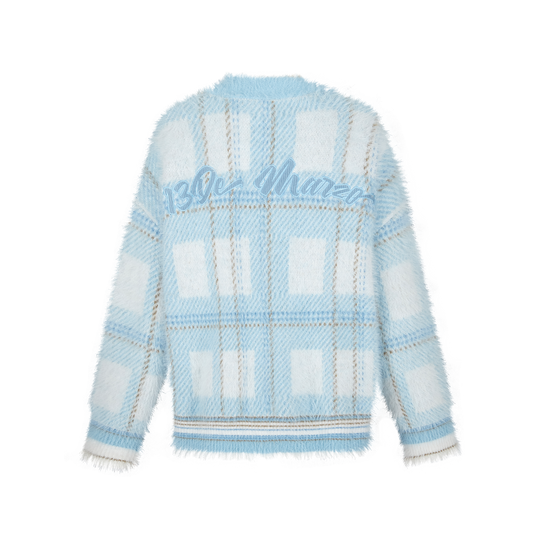 13DE MARZO Bear Button Plaid Knit Cardigan