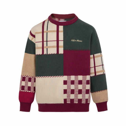13DE MARZO Christmas Scarf Bear Plaid Sweater